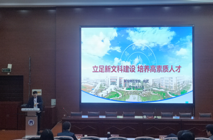 学校党委副书记、校长向武教授作题为“立足新文科建设,培养高素质人才”的报告。在报告中,他首先对“新文科”的背景和内涵、根本任务、时代使命、实施途径、重要抓手等内容进行了系统梳理。他指出:守正创新,是新文科建设的必由之路。守正,就是要遵循传承传统,要在遵循文科教育和人才培养基本规律和传承中华优秀传统文化的基础上推进融合创新。融合,就是要与现代信息技术融合、与其他学科交叉融合、与相近专业集群融合。在发展方式模式上,要注重文理、文工交融;在学校功能上,应从纯文科转向融合型文科;在教学方式上,充分利用现代技术和混合式教学方式。其次,他介绍了将人才培养体制机制改革创新作为新文科建设的重要抓手的7个方面。结合阿坝师范学院“两评估、两转型”背景下应用型转型改革实践,从人才培养、应用研究、产教融合等方面向与会人员分享和交流了我校的做法和取得的丰硕成果。在介绍我校“教育部科学工作能力提升计划(百千万工程)”的转型实践时,他分享到:科学工作能力实训,具有“1+2+3”的特点:1就是一个创始人,2就是文科应有实验室、脑力劳动也有标准,3就是文科脑力劳动可以实现工作科学化、标准化、教学目标化。最后他讲到,科学工作能力实训平台是一个开放的平台,可以装入各种工作标准,可以进一步推动文职岗位工作的研究和文科教学工作。我校将继续坚实深入推进和探索产教融合、新文科建设转型实施路径。