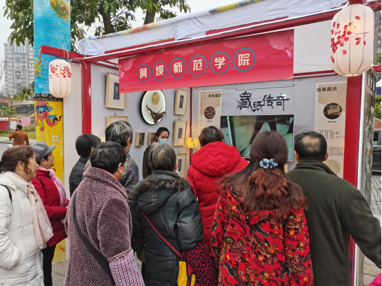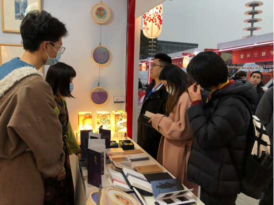 学校藏纸应用研究中心展示的藏纸绘画作品、藏纸笔记本、藏纸刺绣壁挂、藏纸灯饰、藏纸包装设计等文创产品深受大众喜爱。