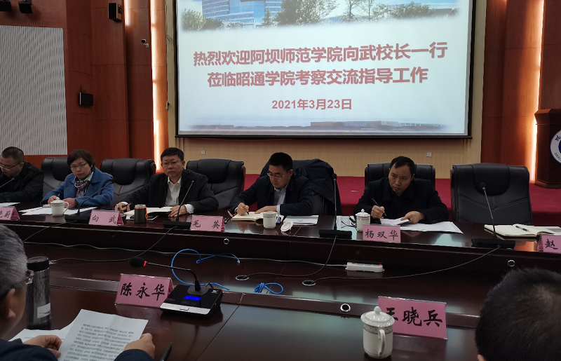 向武对昭通学院的热情接待表示感谢,对昭通学院取得的成绩表示高度赞赏。他重点介绍了阿坝师范学院的发展历史、办学理念、专业设置与特色等,希望以此次考察交流为新的起点,不断加强两校交流合作,积极学习借鉴昭通学院的办学经验,尤其是办学水平合格评估的先进做法,加快提高阿坝师范学院人才培养质量和办学水平。