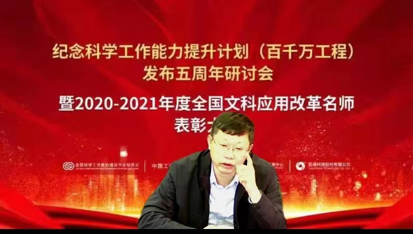 【本网讯】2022年1月14日,全国科学工作平台建设联席会利用云直播平台,组织召开了纪念教育部科学工作能力提升计划(百千万工程)发布五周年研讨会。本次研讨会由全国科学工作能力建设平台联席会秘书长、国家开放大学政法学部部长刘惊铎教授主持。我校党委副书记、校长向武应邀参加会议并代表项目院校作专题报告。