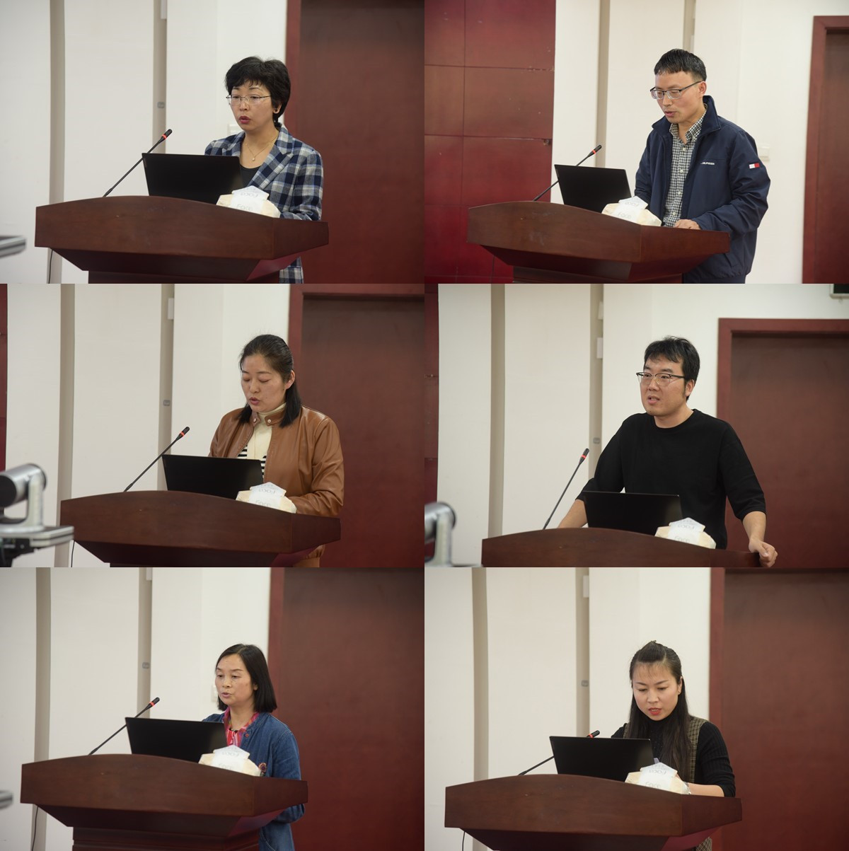 随后,其他部门负责人及教师代表进行汇报。人事处处长焦安勤“说教师队伍建设”,汇报学校全面落实办学目标、推进教师队伍建设情况;数学学院院长杨仕椿“说发展”,就数学学院的发展建设历程展开汇报;环境设计专业带头人焦凤“说专业”,围绕立德树人根本任务汇报专业建设情况,陈述“学生中心、产出导向、持续改进”的人才培养理念;历史学教研室主任王振兴“说教研”,就历史学专业教研中的思路、问题、举措与成效作汇报;教师代表杨正翠“说课程”;辅导员代表李成秀“说育人”。汇报人的发言均着眼于学校发展规划的大局,立足于本职工作,格局宏阔,数据详实,全方位展示出我校办学实力和评建工作的开展情况。