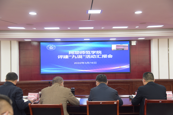【本网讯】2022年3月16日14时,阿坝师范学院以行政楼二楼会议室为主会场,并设立20个分会场举办评建“九说”活动汇报会。全体校领导、全体教职员工参加本次会议。会议由党委常委、副校长毛英主持。