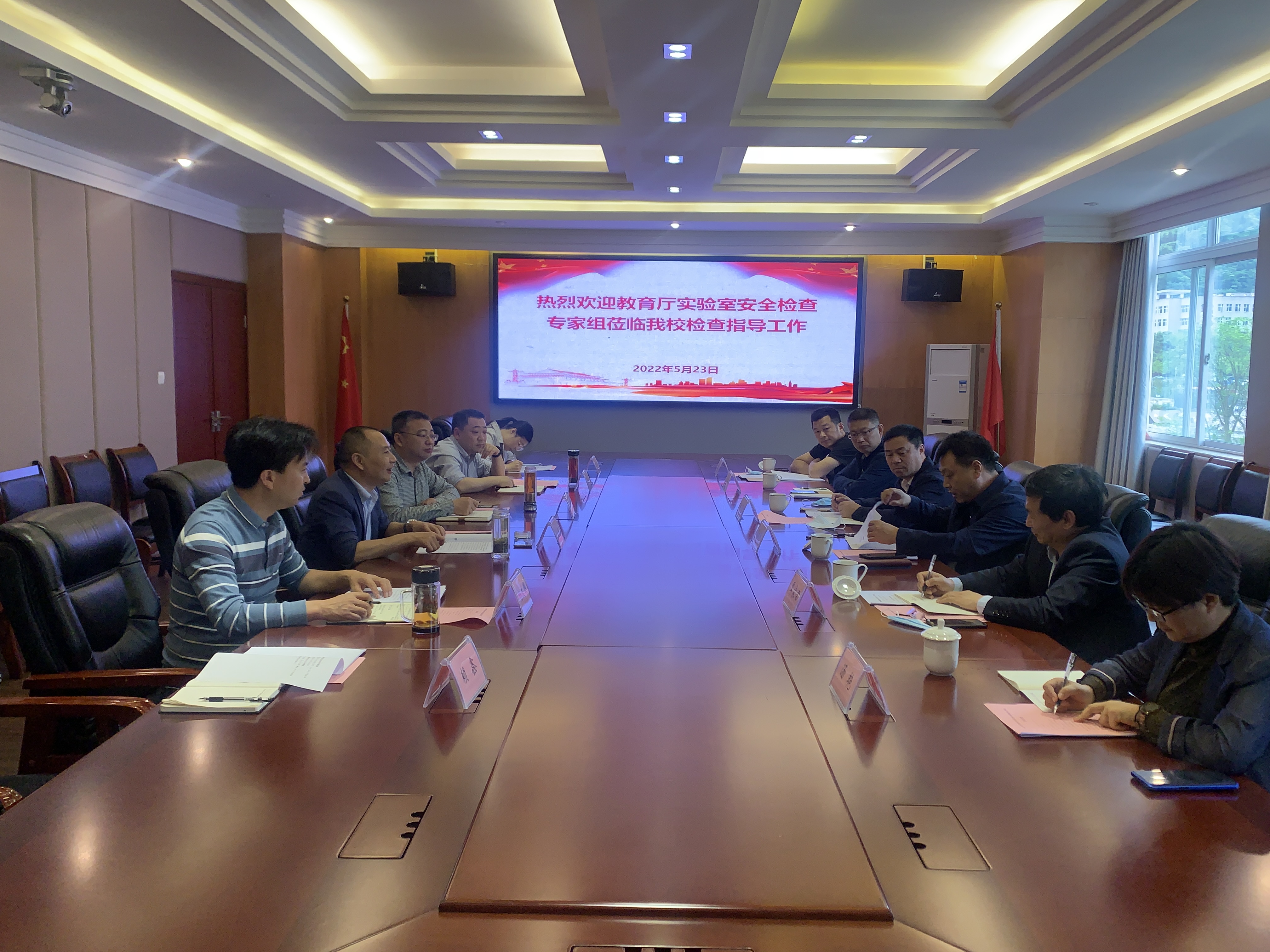 【本网讯】根据《四川省教育厅办公室关于开展2022年高等学校实验室安全检查工作的通知》(教发厅函﹝2022〕11号)工作安排,5月23日,在我校行政楼406会议室,由西南石油大学化学化工学院副院长王林元担任组长,带领四川信息职业技术学院图书馆馆长姚波、四川文化艺术学院经济管理学院常务副院长覃家君、西南医科大学公共卫生学院副院长汤艳、绵阳师范学院化学与化学工程学院实验室主任李松、四川工业科技学院教师王昱山组成的实验室检查专家组来我校就实验室安全进行检查和指导工作。