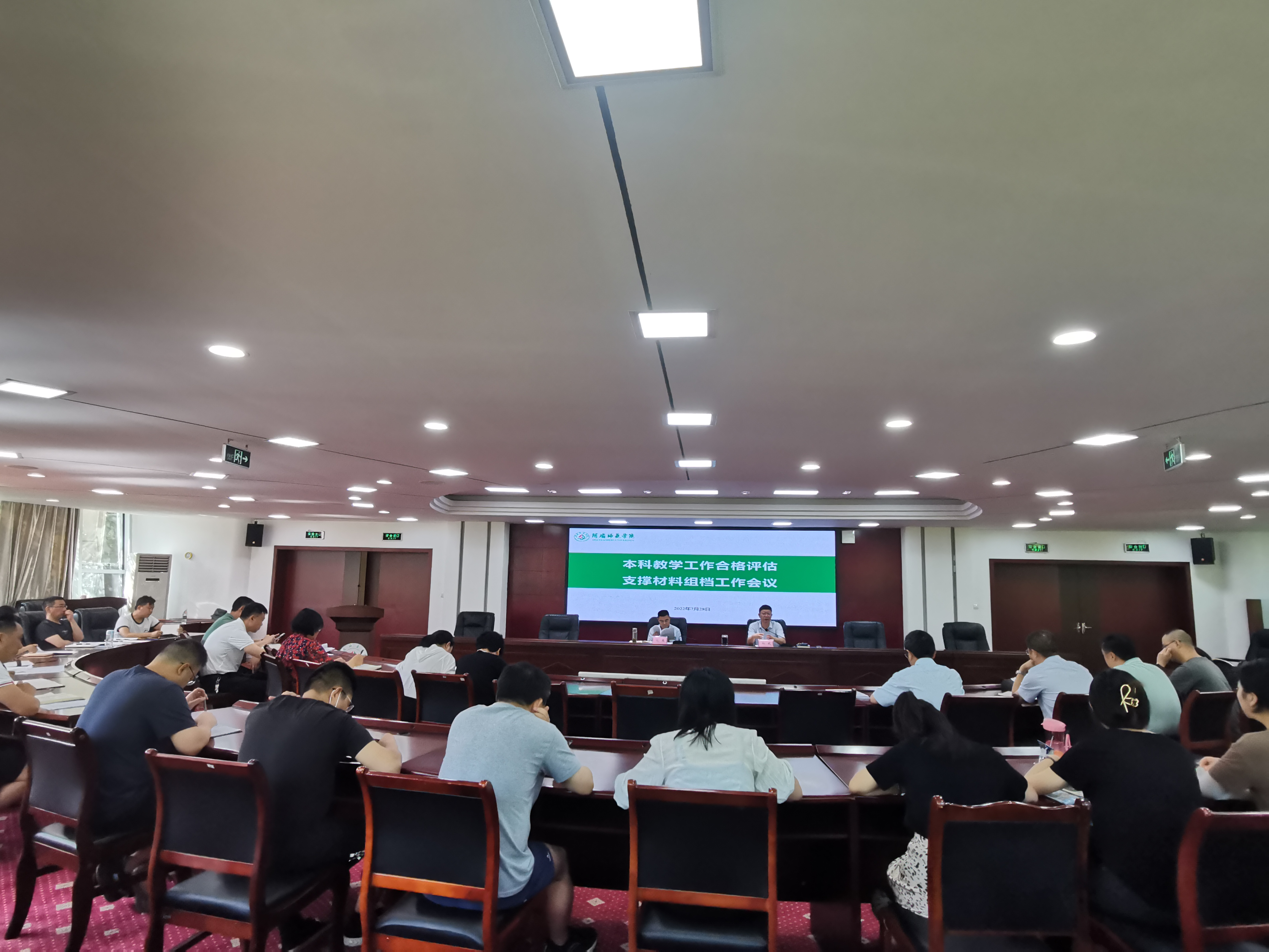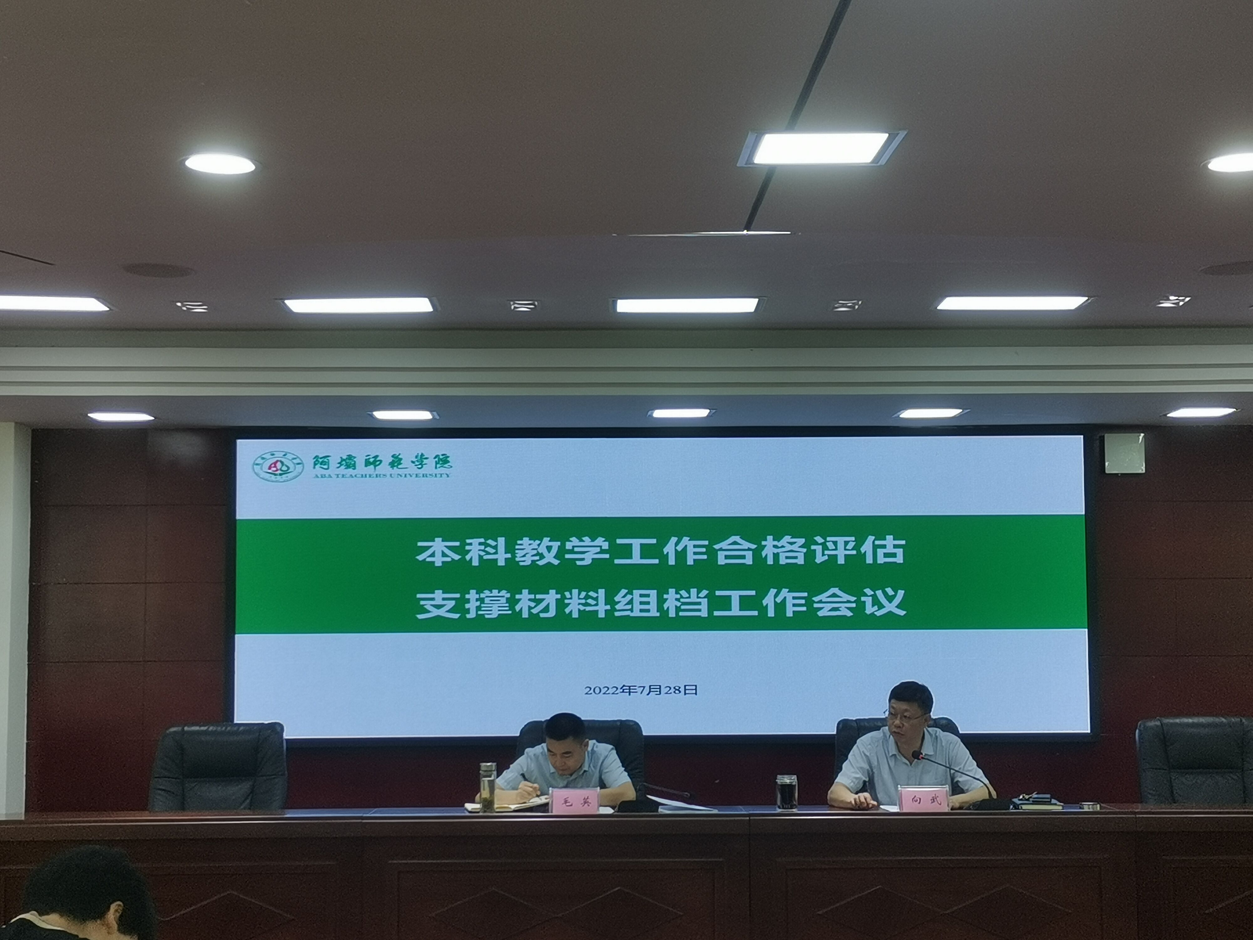 【本网讯】2022年7月28日,我校于行政楼二楼会议室召开本科教学工作合格评估支撑材料组档工作会议。学校党委副书记、校长向武,党委常委、副校长毛英,学校各观测点牵头部门负责人,支撑材料组档人员及评建办工作人员参加本次会议。向武主持会议。