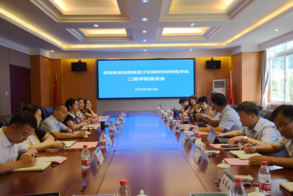 【本网讯】2022年8月16日14:30,我校召开落实教育部师范教育协同提质计划二级学院座谈会。北京师范大学党委常委、副校长涂清云,教务部(研究生院)培养处副处长李艳玲、工作人员黄玉琦,党委、校长办公室副主任邹丽春;西北师范大学党委常委、副校长董晨钟,教务处处长何玉红,社会合作服务处处长杨钠名,教师教育学院党委书记王兴,研究生院副院长王耀斌,人事处副处长胡勇,教务处办公室主任王建琴;阿坝师范学院文学与传媒学院和数学学院党委书记、院长、副院长以及各职能处室主要负责人相继参加座谈会。会议由董晨钟主持。