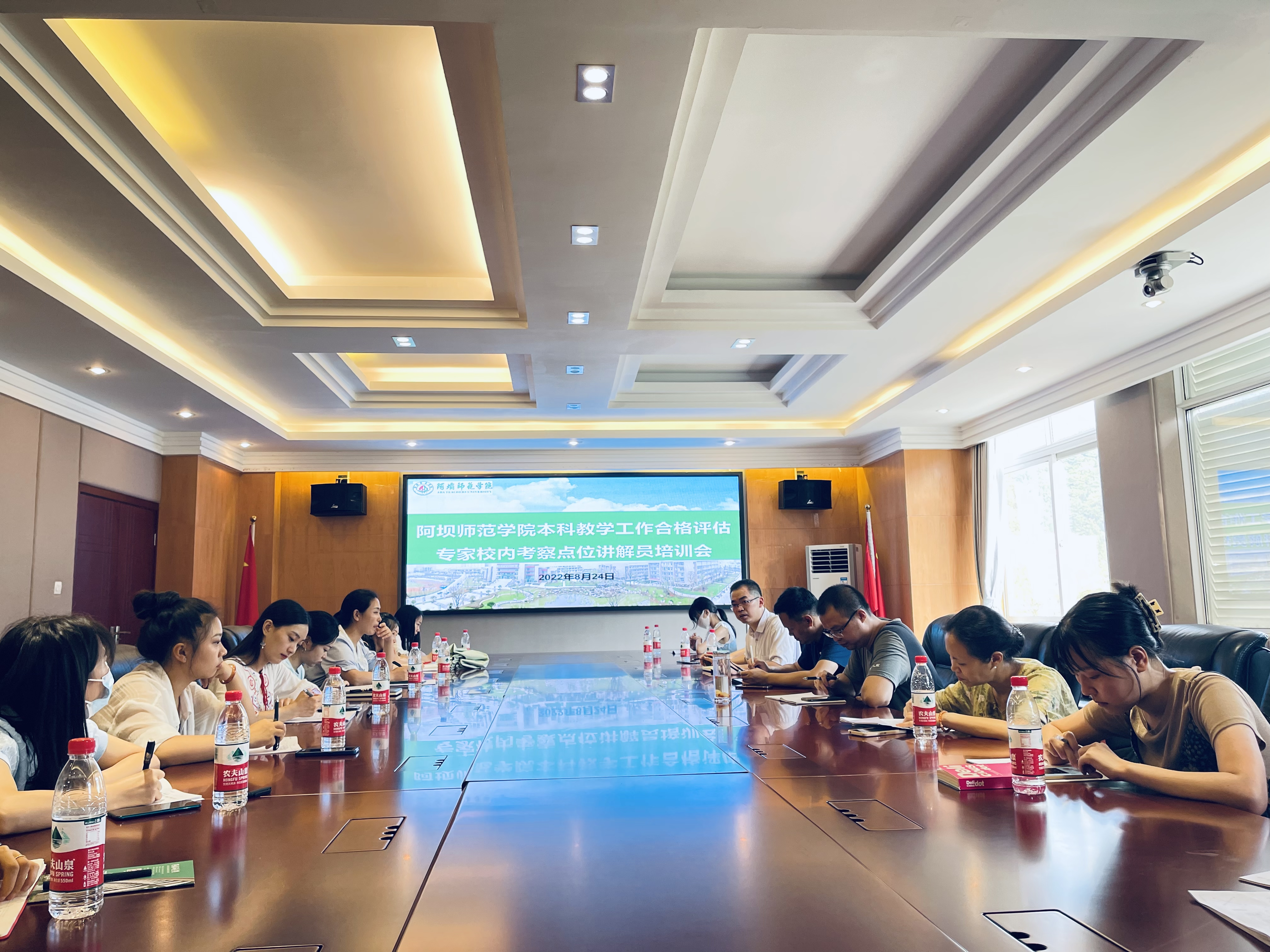 【本网讯】为进一步落实“评建二十字”方针,助推专家校内考察点位讲解工作,我校于2022年8月24日在行政楼406会议室召开本科教学工作合格评估专家校内考察点位讲解员培训会。学校党委常委、组织部部长刘伟,组织部副部长唐刚,质量监控与评估处副处长袁甲,评建办工作人员刘全飞及各点位讲解员参加了本次会议。唐刚主持会议。