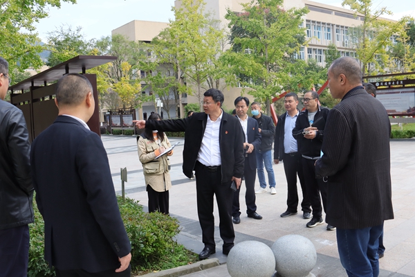 【本网讯】为有序推进学校迎评建设工作,全力推动我校本科教学工作合格评估落实落细,2022年10月17日,我校党委书记吴昊,党委副书记、校长向武,党委副书记孙建平,党委常委、副校长马昌威,党委常委、副校长、工会主席宋弘,党委常委、副校长齐泽民及各职能部门负责人和工作人员对校园建设工作进行实地检查督导。