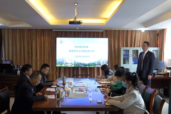 在学生工作部,向武讲到,学生工作部工作中心是以学生为本,以服务学生成人、成长、成才为宗旨。他针对访谈提出两点建议,一是围绕学生管理、心理健康、学生资助体系,以品牌活动牵引,重点侧重在服务学生、服务科研、服务教学这“三服务”上;二是部门教职工需要将相关资料和文件政策解读准确、清楚,将部门相关数据资料掌握透彻。