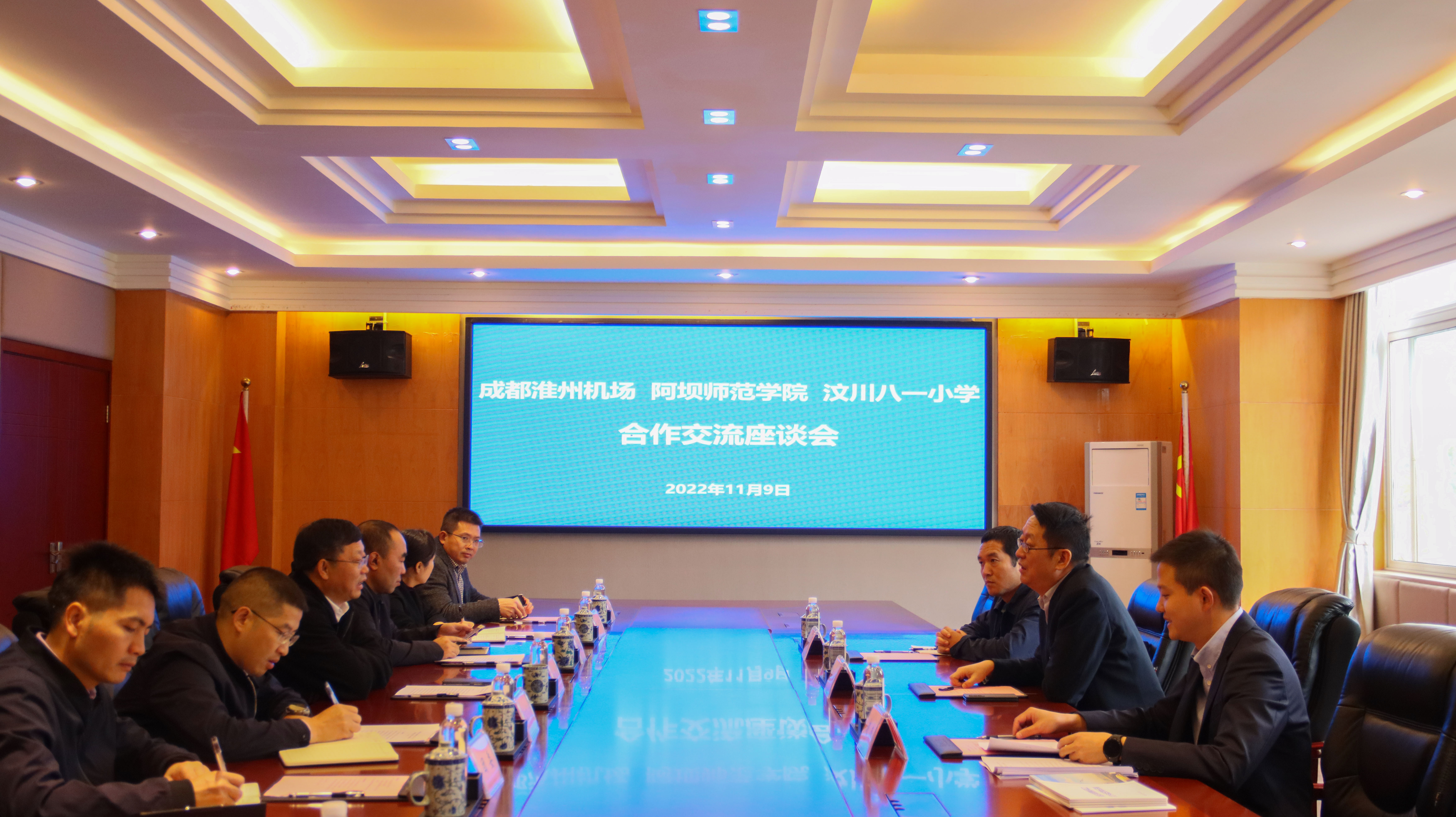 会议伊始,向武校长对陈斌一行的到来表示热烈欢迎,接着他从办学历程、办学特色、办学条件、办学规模、学科建设以及对外合作项目等方面介绍了我校的基本情况,重点强调了我校少数民族艺术领域取得的进步,以及发展羌族文化,弘扬文化自信的必要性。他还表明,我校与淮州机场、汶川八一小学的合作不仅能够促进我校学生的目标树立和未来就业提供有益参考和方向明确,还能够加强彼此之间的文化交流,实现合作共赢。