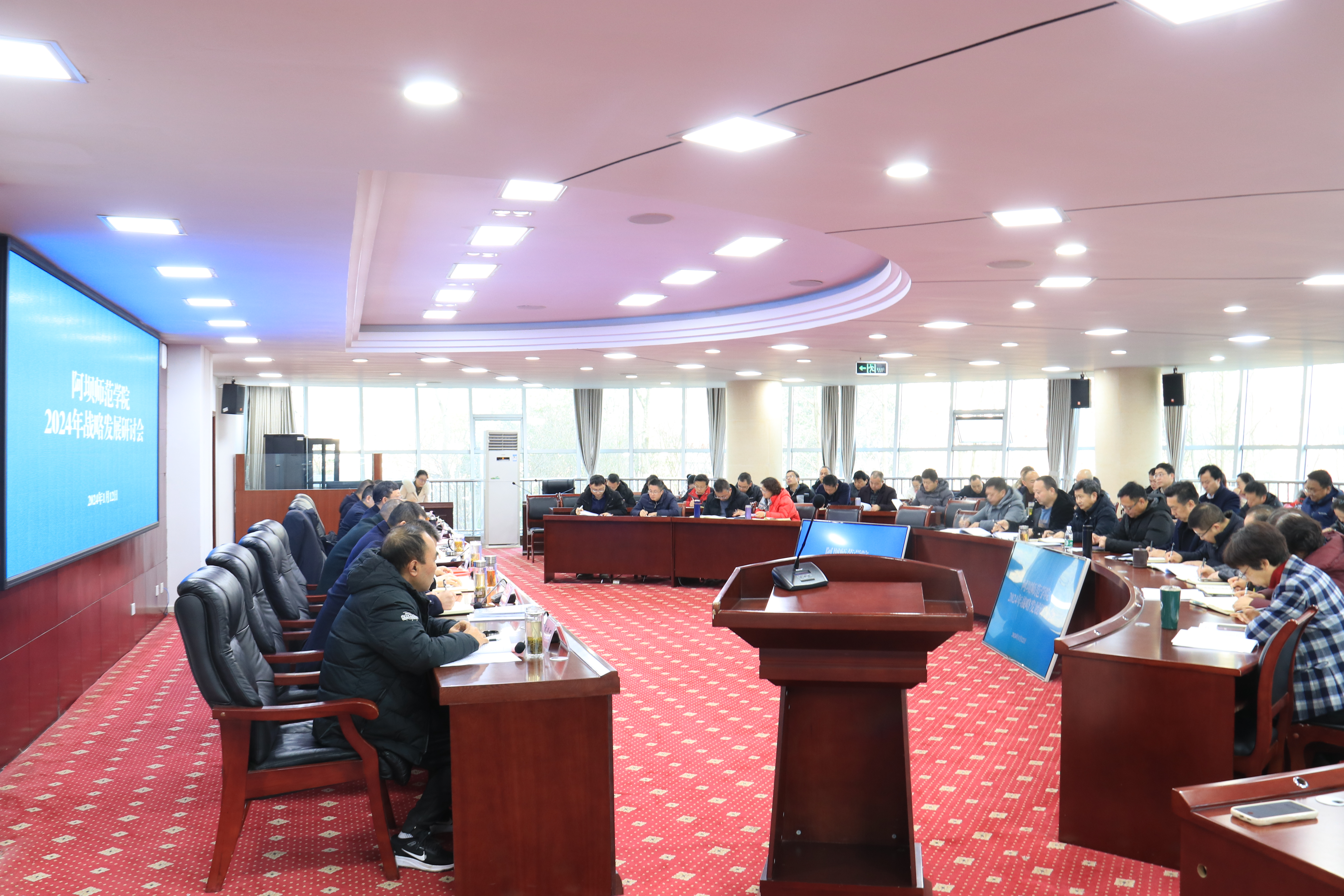 【本网讯】1月12日上午,我校在行政楼二楼会议室召开2024年战略发展研讨总结会,全体校领导出席会议,全体中层干部,学术委员会委员、教学指导委员会委员、学科建设委员会委员和县级以上人大代表、政协委员参加会议,会议由学校党委副书记、校长向武主持。