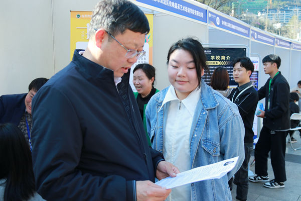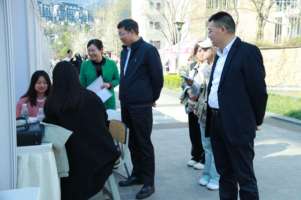 党委副书记、院长向武,党委副书记毛英莅临双选会现场,衷心感谢招聘单位对学校的关心和支持,并详细了解企业基本情况、岗位需求和招聘进展等。向武指出,本次双选会围绕社会需求和行业前沿组织筹备,既为学生充分就业提供了宽广平台,也进一步深化了校企合作。在与企业的沟通交流中,他详细介绍我校人才培养特色,充分肯定我校学子的综合素质和工作能力。同时了解到今年人才招聘市场明显回暖,岗位需求强烈、就业机会大,鼓励学生珍惜机遇、精准定位,树立正确的择业观和就业观。他强调,各二级学院要进一步强化学科建设和科研创新,适时增设科研岗位,提高学生就业热情,让毕业生有机会实现当地就业。