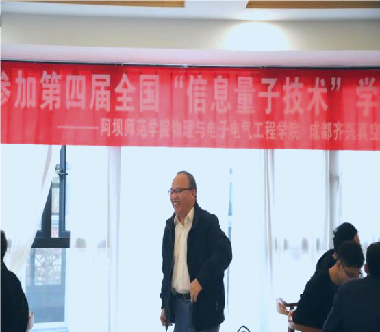【本网讯】为给量子信息技术领域研究的青年学者搭建学术交流平台,促进我国相关研究的发展和实用化进程。3月30日,由阿坝师范学院物理与电子电气工程学院、成都齐兴真空镀膜技术有限公司联合主办的第四届全国“信息量子技术”学术研讨会在我校隆重举行。本届学术研讨会主题为:基于量子技术的信息处理方法。西南交大韦联福教授、张淼博士、王轶文博士,腾讯量子实验室戴茂春博士,深圳国际量子研究院郭伟杰副研究员,上海豪锦通信公司总经理孙吉,上海赛那德公司总经理李华,成都齐兴公司总经理、高级工程师常鸿,我校物理与电子电气工程学院副院长唐剑、教师邹富成等39位专家学者参加研讨会。