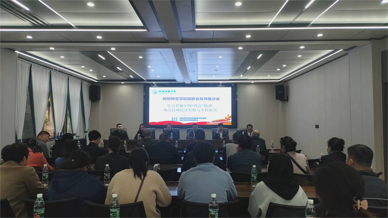 【本网讯】为充分发挥我校党外知识分子在县域经济社会发展中的积极作用,进一步提升建言献策水平和履职尽责能力。4月10日,我校召开知联会双月座谈会,围绕“学习贯彻全国两会精神,助力县域经济发展与乡村振兴”主题交流研讨。汶川县赵公村监委会主任张涛,我校党委宣传统战部副部长卜凡,知联会会长吴文权,副会长张刚、张林,理事会全体理事、部分会员及校内各二级党委统战委员参加会议。会议由知联会秘书长杨阔主持。