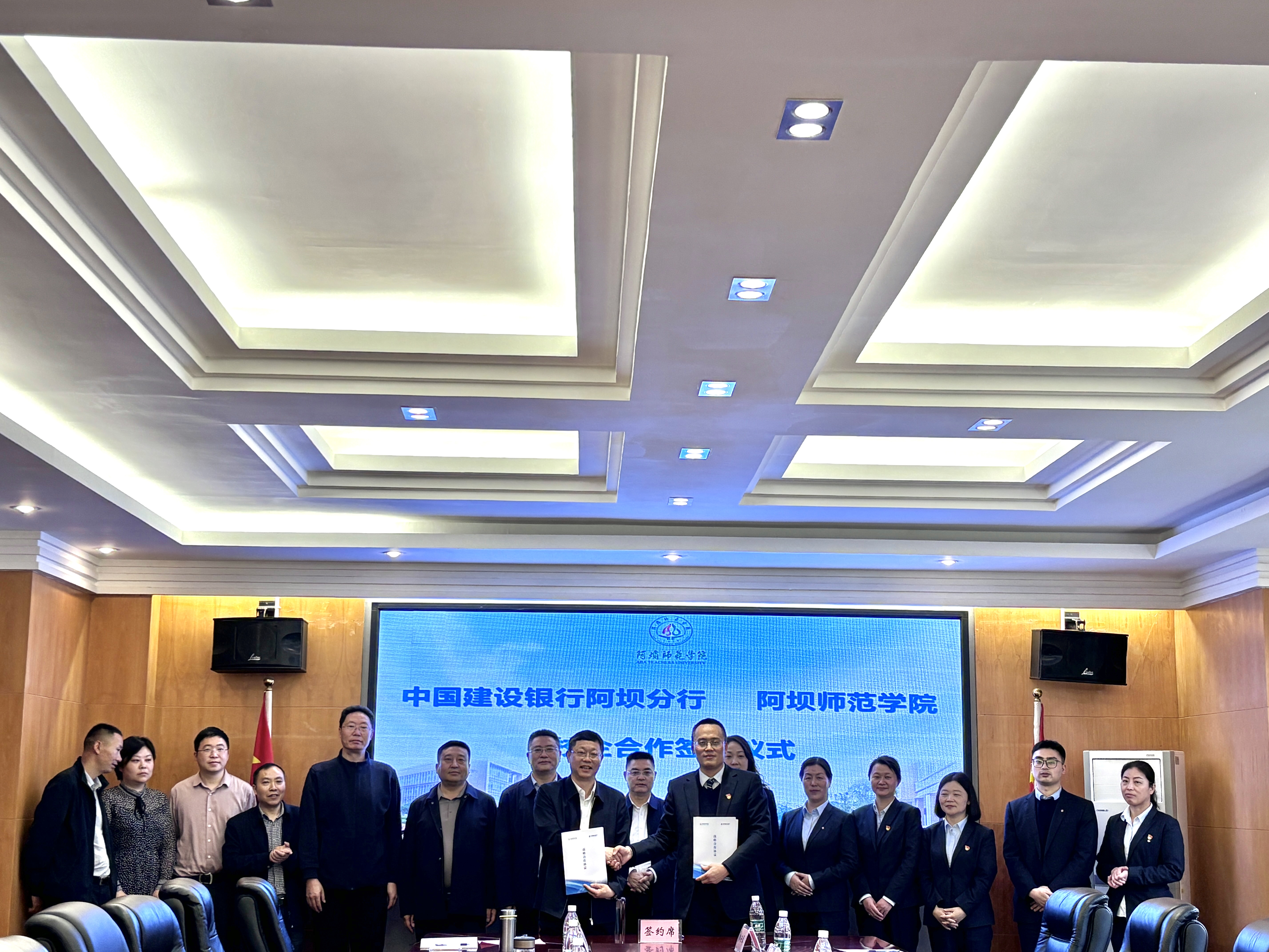 据悉,中国建设银行阿坝分行公司部总经理卞小梅、余茂江,中国建设银行汶川支行行长贺欣、公司部总经理韩兴翠;我校对外合作处处长罗清杨,计划财务处处长杨双华,教育信息技术中心副主任李睿,党政办公室副主任周雪等参加仪式。