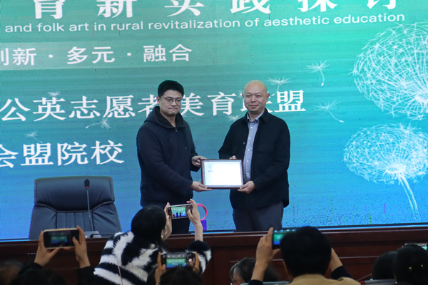 陈卫和作《乡村美育浸润路径》专题讲座。他围绕“美育浸润行动与蒲公英志愿者美育联盟的关系和美育浸润的方式”展开讲解,他表示,要摒弃“唯成绩论”思想,提高对五育协调发展的重视,从“五育并举”角度创新思路,采取恰当有效的方式促进学生德智体美劳全面发展。