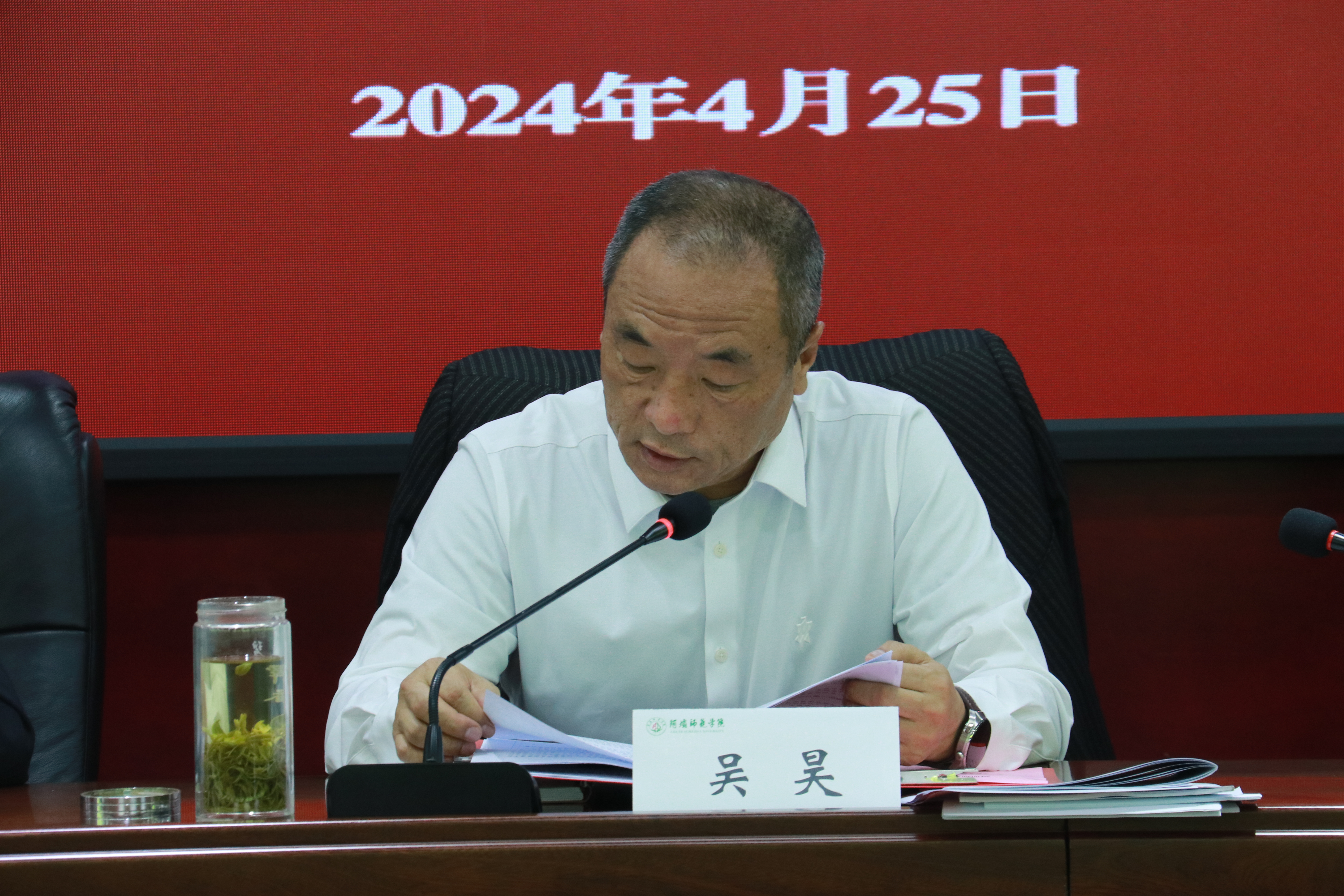 吴昊传达学习上级重要文件精神并提出三点要求。一是提高政治站位,深刻领悟党的自我革命思想精髓。切实把衷心拥护“两个确立”、忠诚践行“两个维护”体现到学校全面从严治党的实际行动和工作成效上,持续巩固发展风清气正的良好育人政治生态;二是狠抓工作落实,夯实风清气正的校园政治生态。要坚持和完善党委领导下的校长负责制,全面落实立德树人根本任务,坚持新时代党的组织路线,树立好正确选人用人导向,进一步优化学校干部队伍,纵深推进党风廉政建设和反腐败斗争;三是认清形势要求,弥补学校党建工作的短板弱项。在肯定成绩的同时要认清当下基层党组织党建工作在主责意识、抓党建促高质量发展、党员发展和教育管理、党风廉政建设、基层党组织党务工作者队伍建设、斗争精神和本领、主动担当作为、防风险意识等方面还存在问题与不足;四是勇于自我革命,坚定不移推进全面从严治党。要把全面从严的要求落实到管党治党全过程各方面,要突出政治建设、夯实基层党组织建设,压紧压实主体责任,围绕学校“中心工作”,强化责任担当,以奋斗的意志、奋斗的决心,为全方位推动学校各项事业实现高质量发展作出更大的贡献!