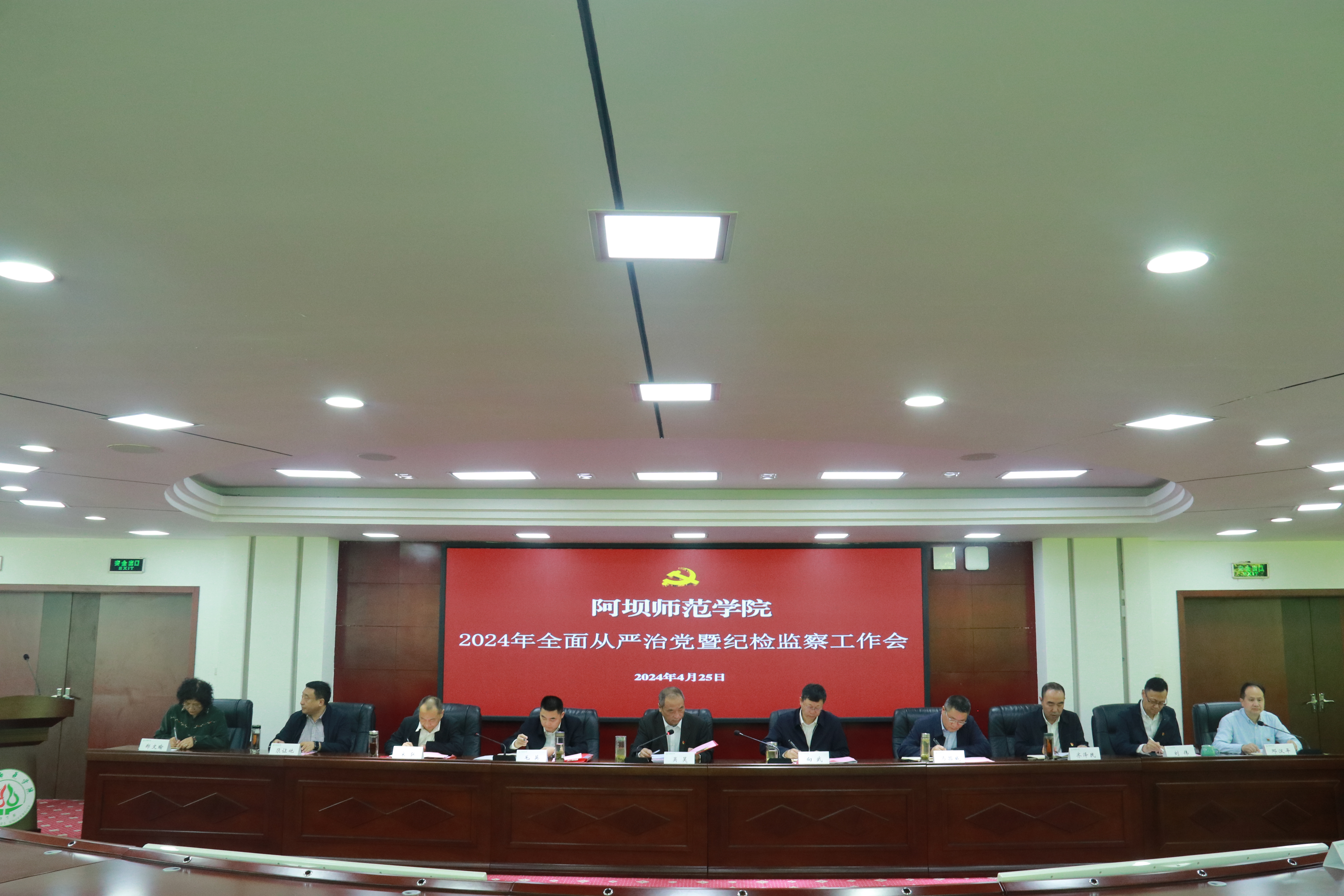 【本网讯】为深入学习贯彻二十届中央纪委三次全会精神,认真落实十二届省纪委三次全会部署要求,全面总结回顾2023年全校党风廉政建设和反腐败工作,安排部署2024年工作任务。2024年4月25日,我校在行政楼二楼会议室召开2024年全面从严治党暨纪检监察工作会,全体校领导及中层干部,二级学院纪检干部,机关各支部纪检委员,省纪委监委驻校纪检监察组成员参加会议,会议由党委书记吴昊主持。