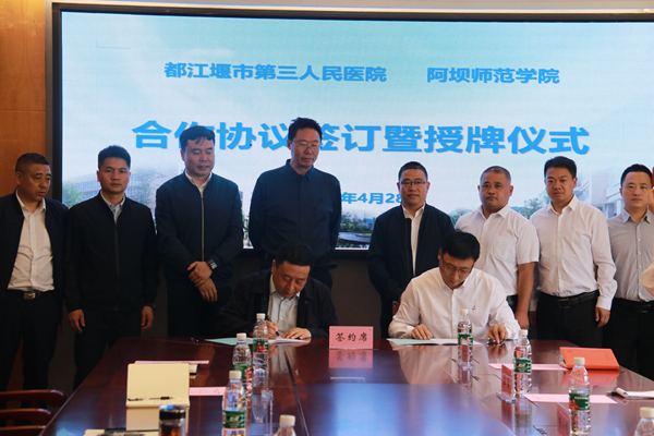 尕让他对来宾一行表示热烈欢迎,并对都江堰市第三人民医院长期以来关心关注并大力支持阿坝师范学院发展建设表示衷心感谢。他就学校的办学历史、办学定位以及理念特色作简要介绍。他指出,此次合作是推动校院发展的重要契机,希望双方能够不断加强在人才培养、心理健康教育等方面的合作交流。