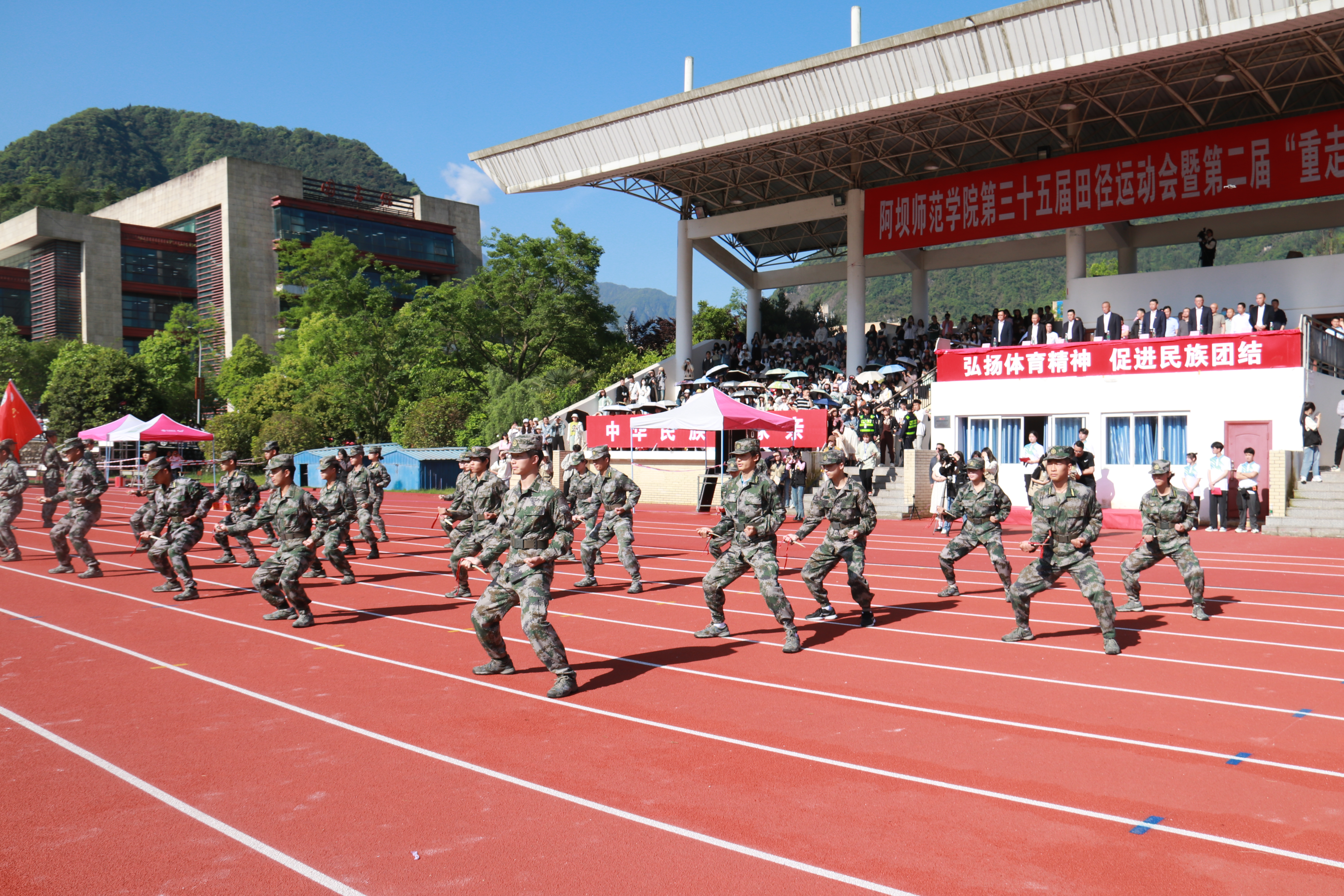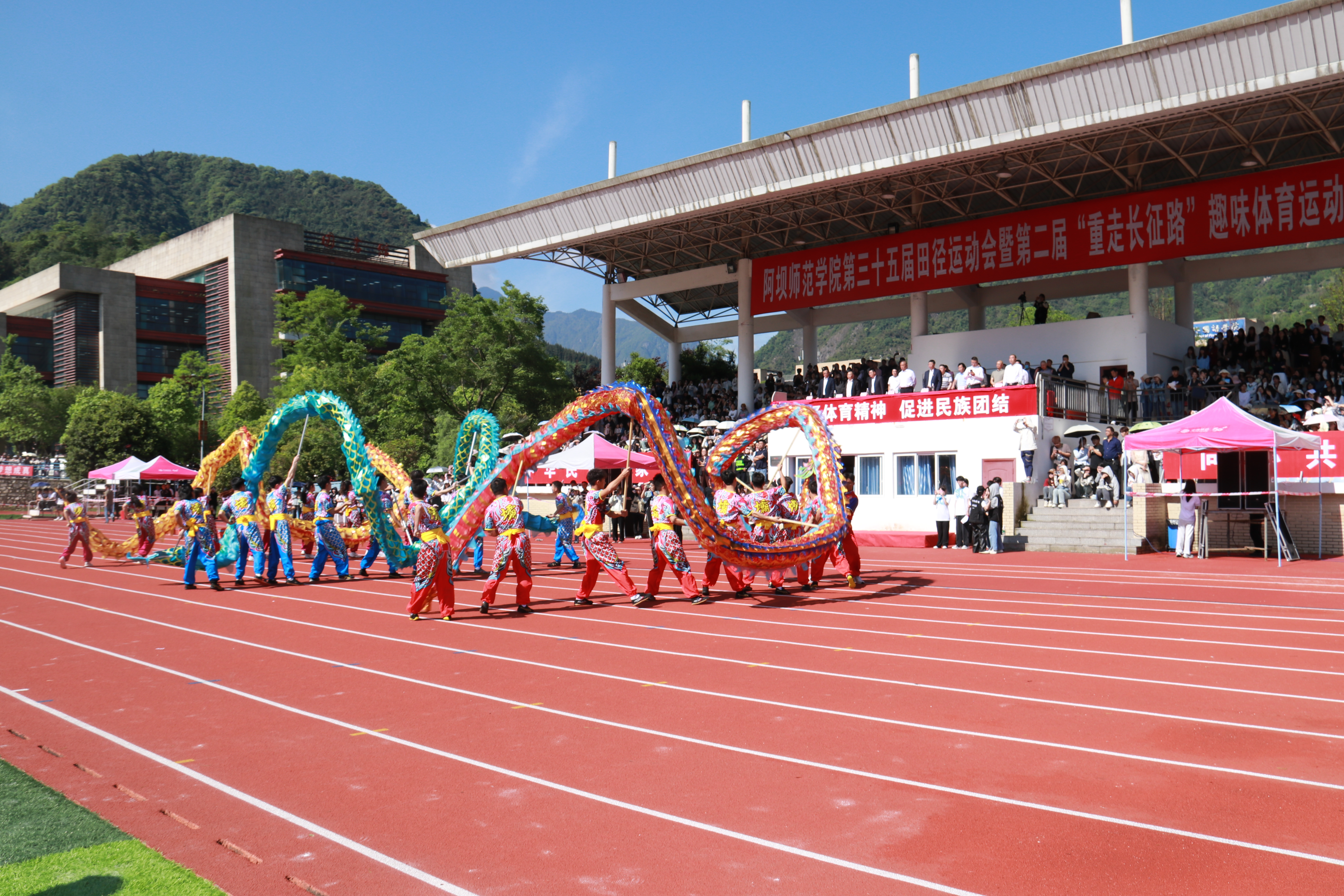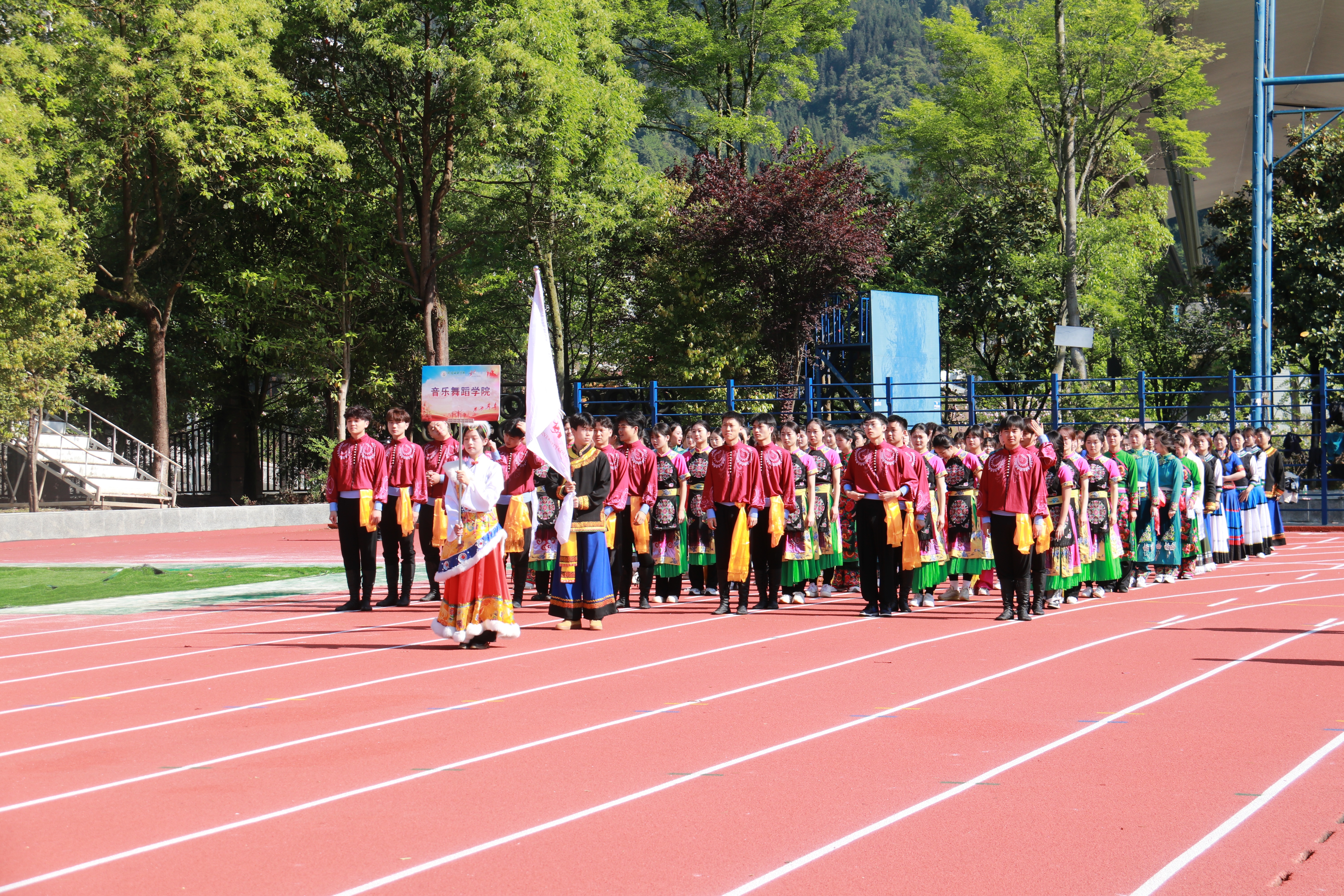 伴随着慷慨激昂的进行曲,国旗护卫队率先入场,校旗方队、会旗方队、彩旗方队、裁判方队、教工方队及14个学院方队迈着铿锵有力的步伐依次进场。民兵排匕首操展示军人的力量与刚毅;马克思主义学院点名34个省份,精彩演绎祖国统一的温情画面;音乐舞蹈学院踩着欢快的节拍,谱写民族艺术壮丽诗篇;藏汉双语学院带来精彩的锅庄舞蹈,传承藏族优秀传统文化;体育与健康学院活灵活现的舞龙表演赢得现场观众热烈掌声;其他各二级学院的舞蹈和文化展示精彩纷呈,紧跟时代潮流,现场气氛高涨。