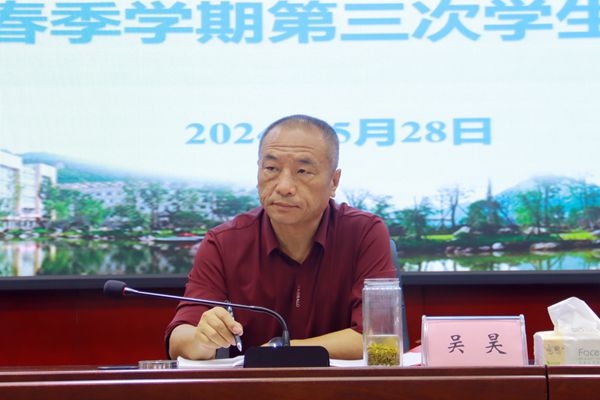 【本网讯】为进一步推进学校学生工作顺利开展,我校于5月28日16:00在行政楼二楼会议室召开2024年春季学期第三次学生工作例会。党委书记吴昊,党委常委、副校长尕让他,校团委书记李家发,保卫处副处长余宗贤,各二级学院党委(党总支)书记、学工办相关负责人员、专职辅导员出席会议,党委学生工作部部长钟顺秋主持会议。