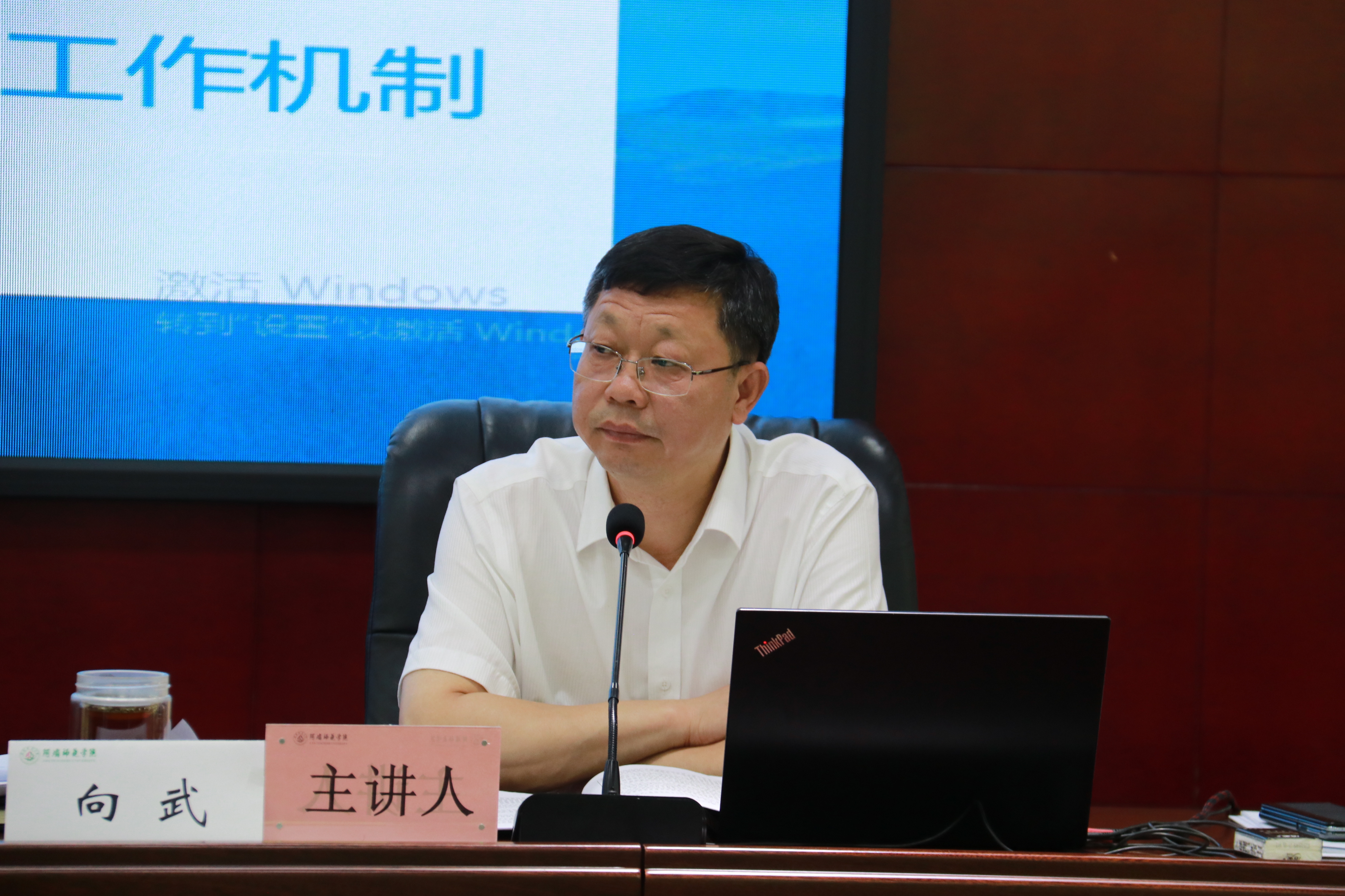 党委副书记、校长向武解读省教育厅2024年高校工作要点,并结合《阿坝师范学院高质量发展三年行动计划(2024-2026)》作《聚焦硕士单位建设,推进学校高质量发展》辅导报告。他指出,目前,我校面临的形势复杂且严峻,要抓住学校高质量发展与实际发展实力及动力不足的主要矛盾,坚持以师范类专业认证、对标竞进、硕士点授予单位建设为主要任务,以党建领航计划、人才培养提质计划、学科建设赋能计划、师资队伍培优计划、社会服务融通计划、治理体系强基计划为统领,不断推进学校高质量内涵式发展。各二级单位要破除“等”“靠”“要”;“庸”“懒”“拖”现象,统一思想认识,集中精力抓教育教学、抓学科建设,将思想意识有效转化为良好的工作动力;要认真研读现行政策与文件要求,善于把政策放在全局、长远、大势中理解和把握,把工作放在学校事业发展大局中考量和推进,做到思路清、方向明,不折不扣抓执行,推动政策落实、落地、落细;要以改革为驱动力,在推动学校改革中要坚持“两点论”和“重点论”相统一,将绩效改革、考核改革、职称改革、科研改革、教学改革等改革措施一体推进,同时扩大二级单位自主权,结合学校总体谋划制定与之相适应的政策方案;要加强队伍建设和团队凝聚力,实施人才强校战略,不断完善高层次人才引育体系,推进管理、教师和服务保障三支队伍建设,为学校高质量发展提供强有力的人才支撑。