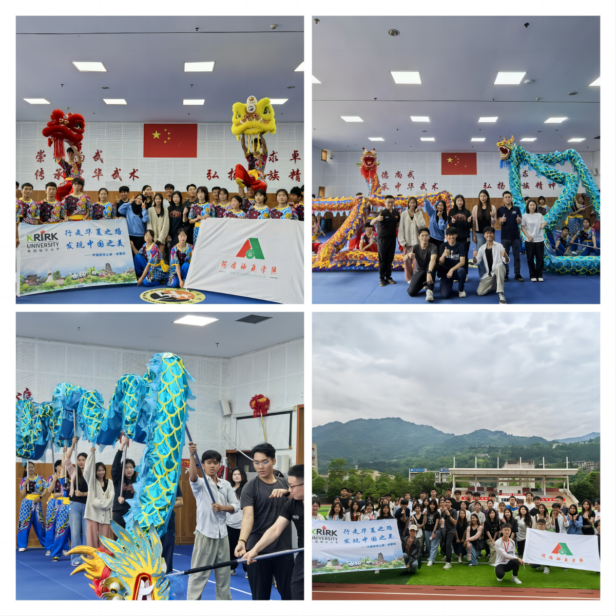 6月1日9:30—11:30,泰国访学团在我校师生的带领下参观室内乒乓球馆并观看社团内部激烈的乒乓球比赛,正手对攻、反手对推,每一次击球的瞬间都让人热血沸腾,动人心魄的比赛场景也赢得在场观众的阵阵掌声。我校少数民族传统体育与运动协会为泰国格乐大学访学团带来的中国传统体育运动——“舞龙舞狮”更令人叹为观止。活动现场,同学们身着鲜艳的服装,手持龙身和狮头,伴随着激昂的鼓点,时而翻腾跳跃、时而盘旋舞动,仿佛将现场人员带入一个神秘的东方世界,访学团也在社团老师的指导下体验这项中华传统文化活动。与此同时,访学团也为我们带来泰拳武术表演,他们的出拳迅猛有力,为此次活动添上了浓墨重彩的一笔。14:30—17:30,访学团移步田径场与我校彝族文化协会和玛吉阿妈藏艺术团成员们共同体验《舞动彝韵,达体共情》《传统韵味,雪域锅庄》等锅庄舞蹈,伴随着欢快的音乐,舞者们身着传统服饰跳跃摇摆,舞步轻盈多姿、扣人心弦,充满着生命的律动。19:00——21:00,访学团与我校师生共同观看器乐协会组织开展的猕猴桃音乐节,其表演形式包括摇滚、流行、民谣等多种音乐风格,这是一场音乐的盛宴,也是文化的交融,即使天空飘起细雨,但依旧阻挡不了两校学子对音乐的热爱。