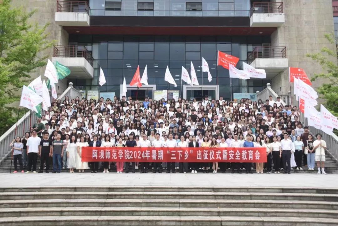 【本网讯】为深入学习贯彻习近平新时代中国特色社会主义思想和党的二十大的精神,激发广大青年投身社会实践的热情,切实做好暑期“三下乡”工作,我校于2024年6月28日在南苑剧场举行了阿坝师范学院2024年暑期“三下乡”社会实践活动出征仪式暨安全教育大会。校党委常委、副校长尕让他,校团委书记李家发、社会实践科科长曾兴华及相关师生参加仪式。
