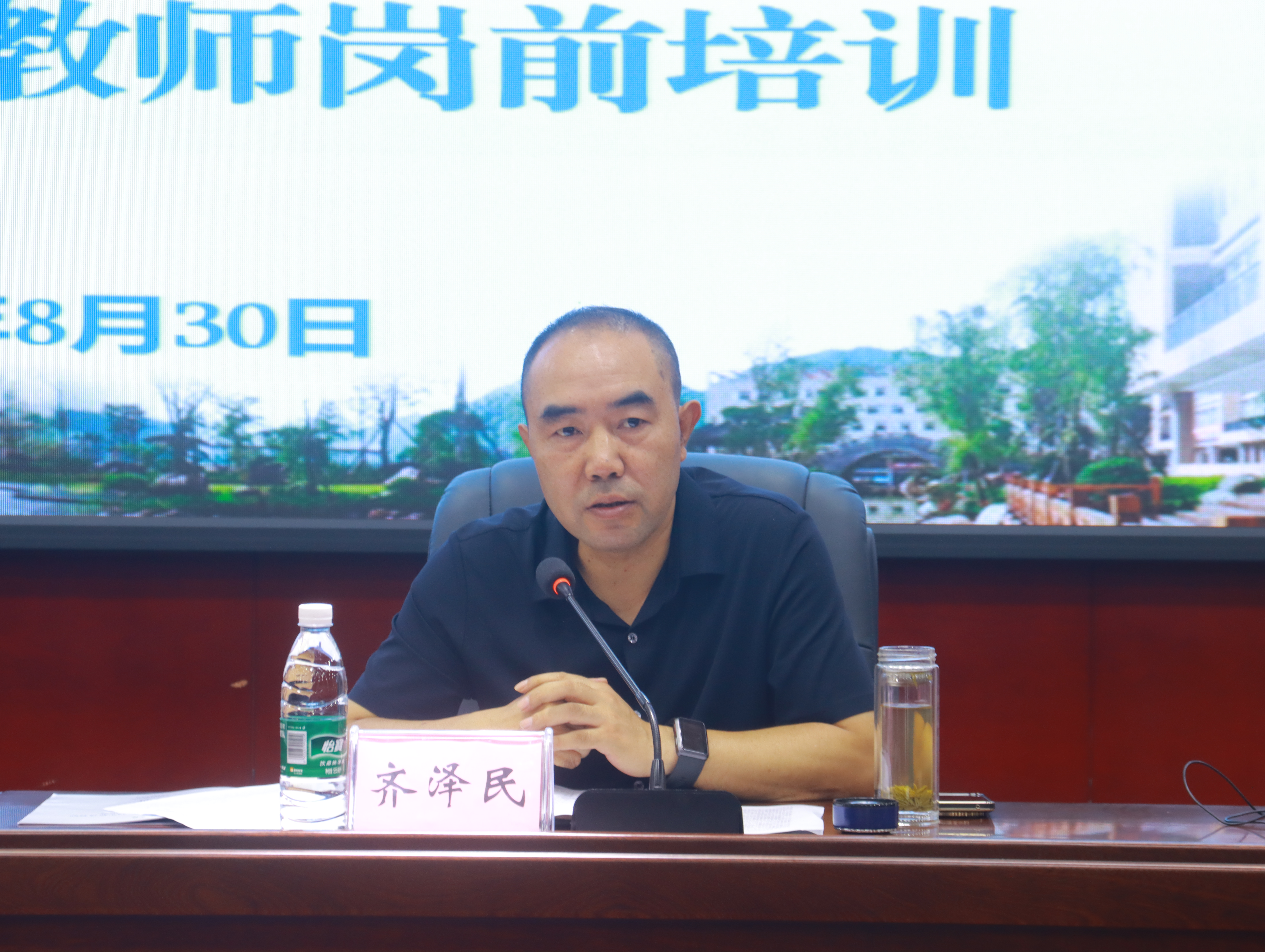 齐泽民作开班动员讲话。他表示,阿坝师范学院建设初心是为解决民族地区师资欠缺问题,促进民族地区政治经济发展稳定是学校的重要使命。建校以来每一位阿师人历经苦难,饱含艰辛,奋力拼搏,在极其艰苦的条件下办学,同自然灾害抗争,逐渐凝结成独具特色的大学精神——“生命不息,奋斗不止”,正是在这种精神的引领下,学校昂首走过从前,正坚定地向未来迈进。国之大计,教育为本;教之大计,教师为本。他希望每一位新进教师提高政治站位,明确职能职责和使命担当,坚持贯彻党的教育方针,落实立德树人根本任务,传承好、发扬好教育家精神;他希望每一位新进教师走上讲台、站稳讲台、站好讲台,明确讲什么?怎么讲?深入了解和掌握所教学科专业架构和核心课程知识图谱,结合前沿问题不断完善教育内容和教学方法,坚持以学生为中心,强调育人为本,教育引导学生扣好人生第一粒扣子。