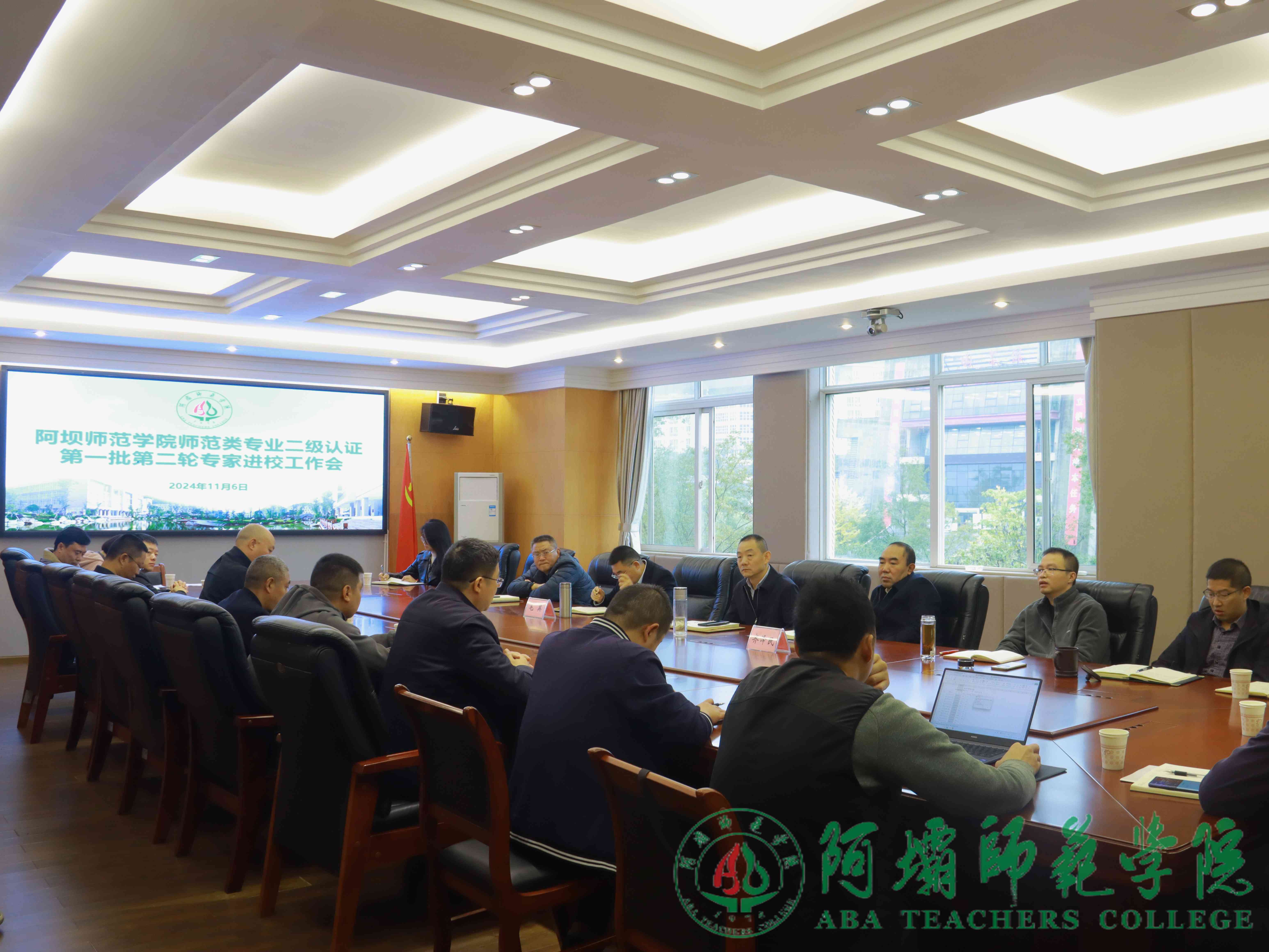 【本网讯】为全面做好学校师范类专业二级认证第一批第二轮专家组进校考查相关工作,我校于11月6日10:00在行政楼406会议室召开2024年阿坝师范学院师范类专业二级认证工作推进会。省纪委监委驻阿坝师范学院纪检监察组组长、党委副书记、纪委书记朱建军,党委副书记毛英,党委常委、副院长马昌威,党委常委,副院长齐泽民出席会议,相关职能部门及二级学院主要负责人参加此次会议。
