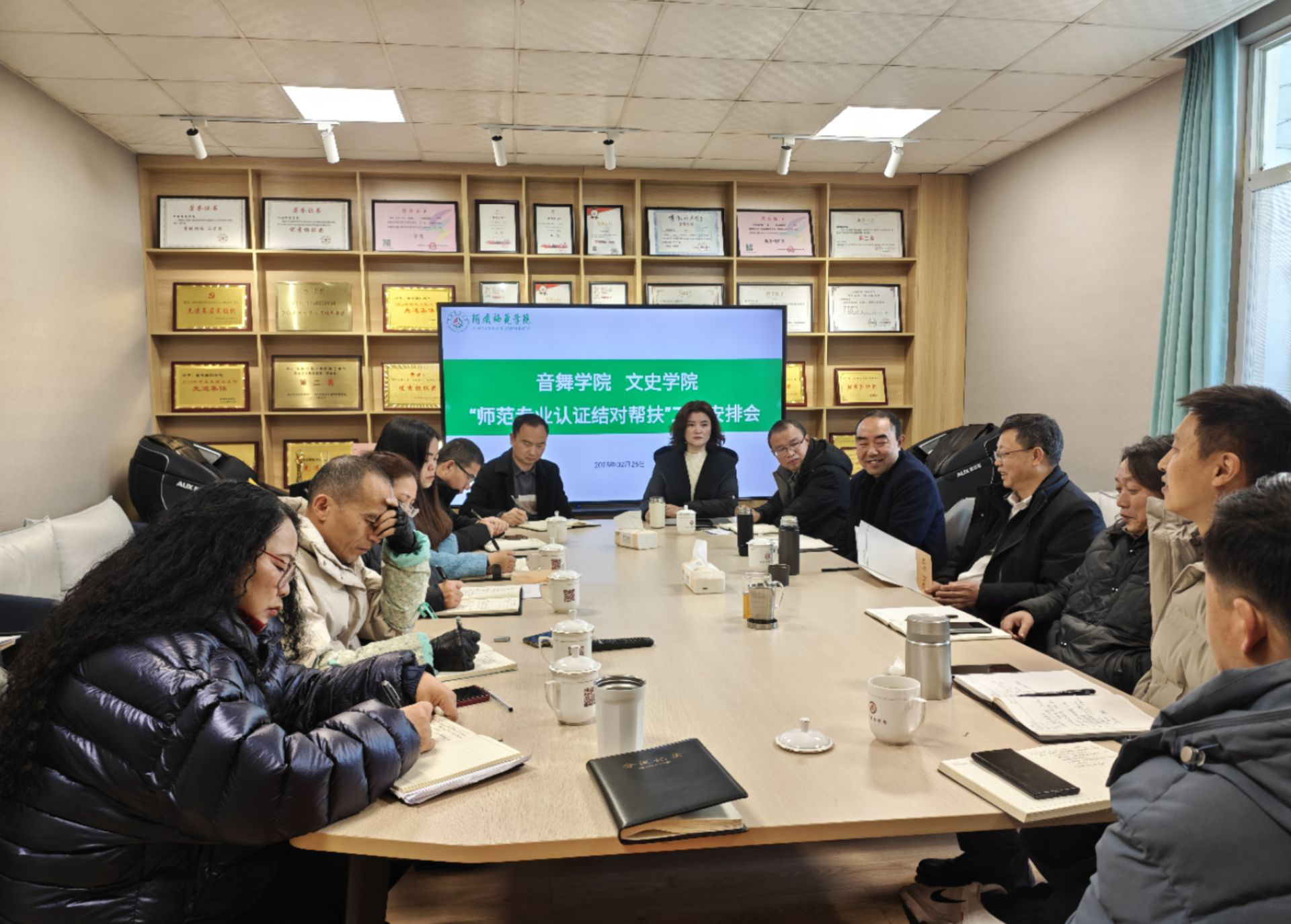 会议伊始,音乐舞蹈学院领导班子成员以“对标认证标准,深化内涵建设”为主题,从认证理念、流程规范、材料准备、课程建设、实践教学等关键环节详细分享了音乐舞蹈学院开展师范类专业认证工作的经验与做法。建议文学与历史学院组建工作专班,对照认证指标体系,夯实工作基础。