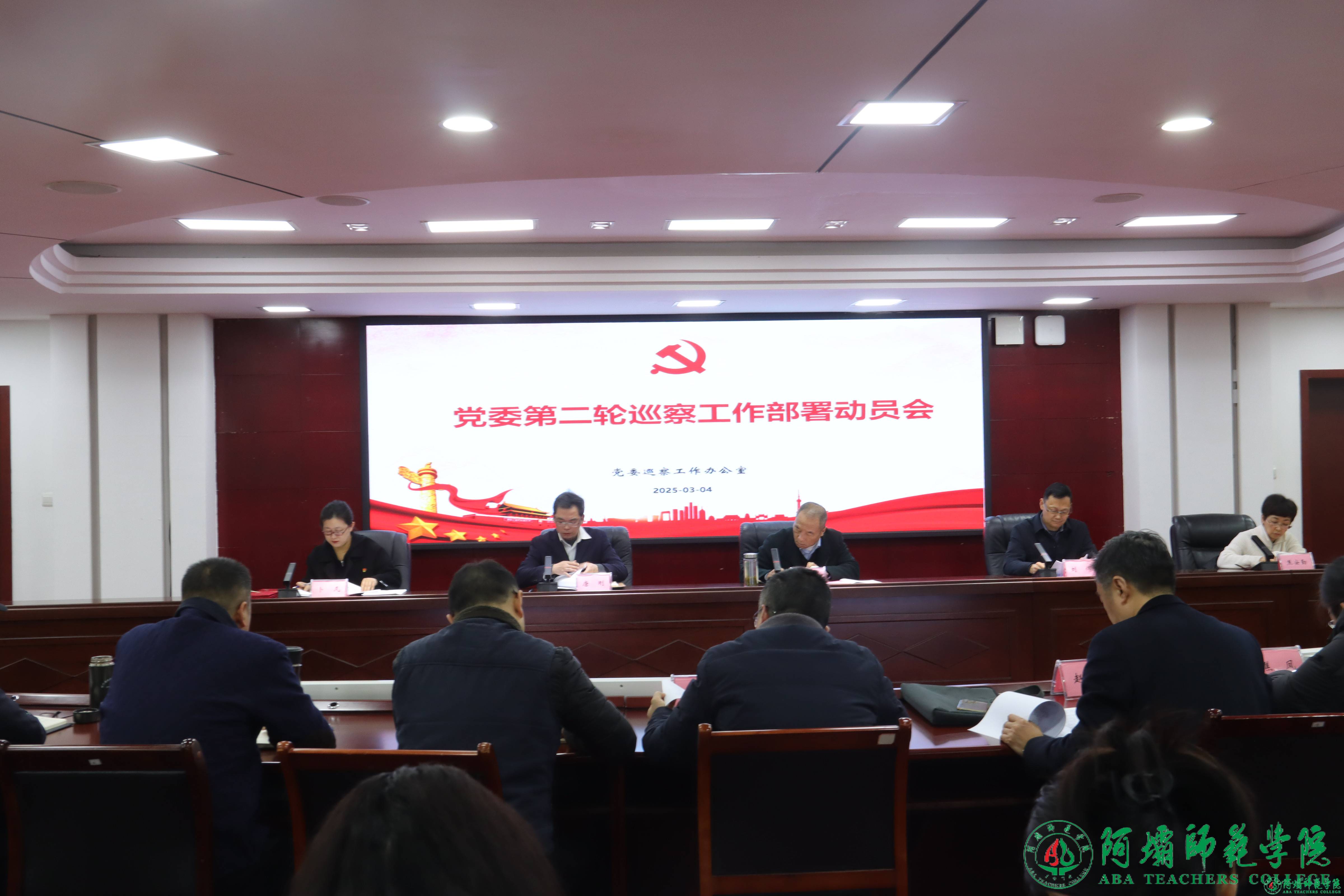 【本网讯】2025年3月4日,阿坝师范学院党委第二轮巡察工作动员部署会在学校行政楼二楼会议室召开。学校党委书记、巡察工作领导小组组长吴昊,学校党委常委、副校长刘伟,纪委副书记、巡察办主任唐刚,党委教师工作部·人事处(教师发展中心)处长焦安勤,第二轮巡察组组长、副组长及其成员,第二轮被巡察单位的科级及以上领导干部和巡察办全体人员参与会议。会议由唐刚主持。