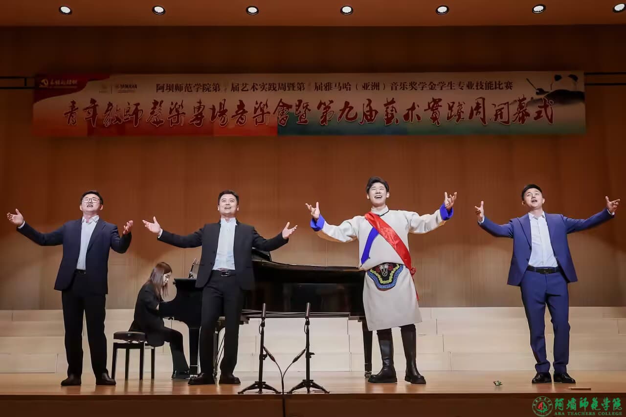 【本网讯】为落实立德树人根本任务,秉承学校“两评估、两转型”发展战略,聚焦“民族+师范”办学特色。音乐舞蹈学院以“艺术实践周”为载体,持续深化本科教学改革,激发学院发展活力,助推内涵式发展。5月19日19:30,阿坝师范学院第八届艺术实践周暨第六届雅马哈(亚洲)音乐奖学金学生专业技能比赛开幕式——“为你歌唱”青年教师声乐专场音乐会在音乐舞蹈学院音乐厅燃情启幕。我校党委副书记、校长向武,省纪委监委驻阿坝师范学院纪检监察组组长、党委副书记、纪委书记朱建军,党委副书记、工会主席宋弘,党委常委、副校长马昌威出席开幕式。
