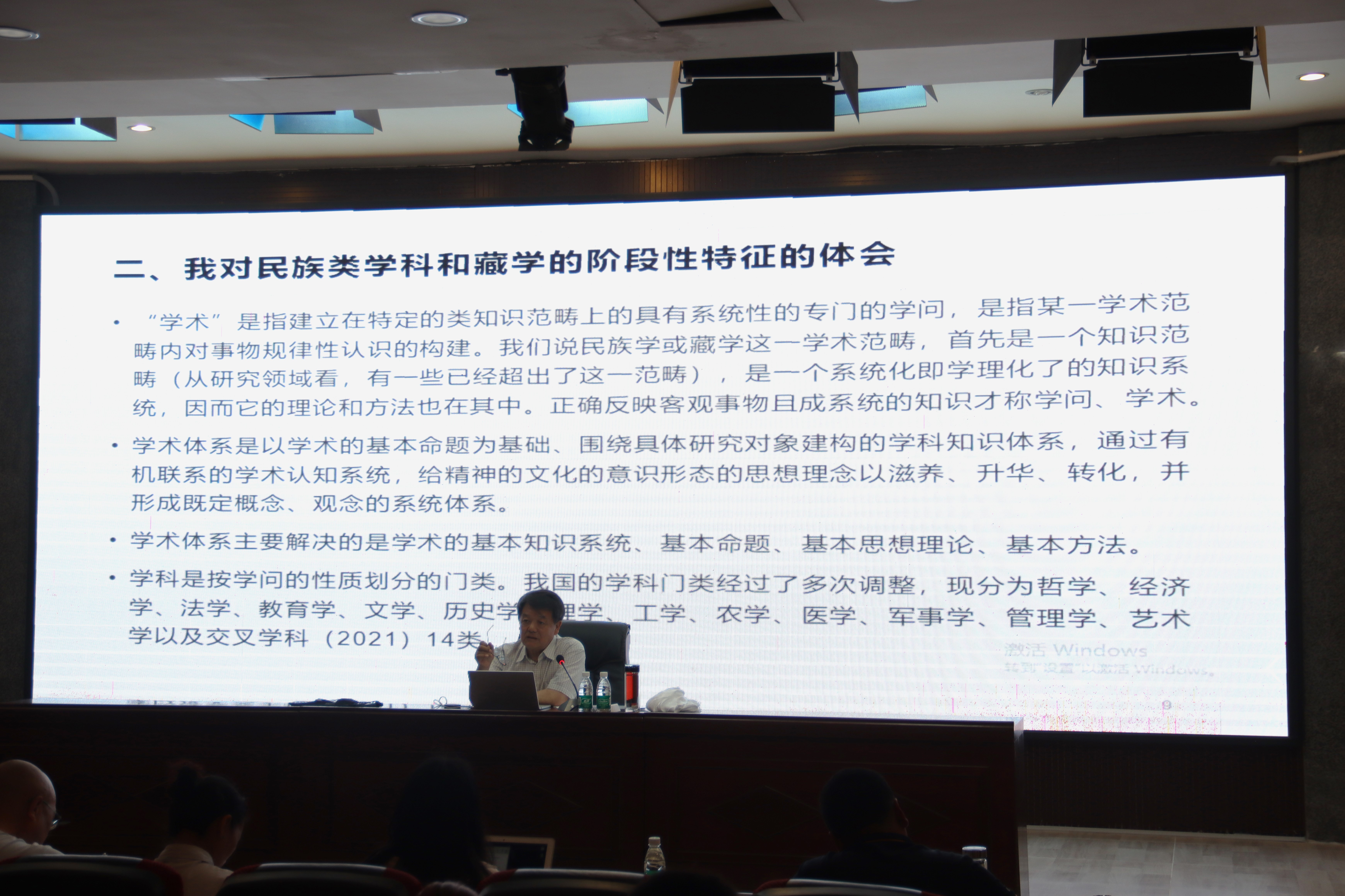 丹珠昂奔教授以习近平总书记对民族工作阶段性特征的总结为切入点,结合他对民族类学科和藏学学科阶段性发展特征的认识,阐述了民族类学科、藏学学科建设要遵循的规律和关注的问题。他指出,民族类学科、藏学学科建设要坚持党的领导,以马克思主义理论、习近平总书记关于加强和改进民族工作的重要思想为指导,在藏学研究和藏学教育的具体实践、人才队伍培养、学术基础夯实等方面提高政治站位、服务服从国家大局、推进高质量发展,在中国式现代化建设的新征程中发挥重要力量。他强调,要坚持科学理论化,处理好学科发展的辩证关系,尊重学科和专业发展的规律,注重其发展的阶段性特征,尤其要重视学科建设所承载的政治和历史使命,要掌握藏学学科内涵,不断增强我国藏学学科的国际话语权和影响力。