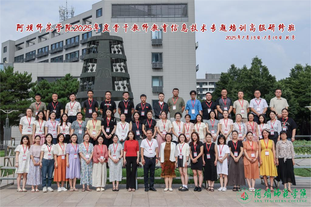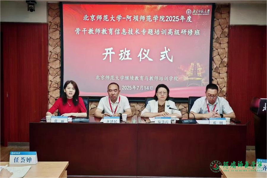 【本网讯】7月14日,阿坝师范学院2025年骨干教师教育信息技术专题培训高级研修班在北京师范大学正式启动。学校党委常委、副院长齐泽民,北京师范大学继续教育与教师培训学院党委书记易慧霞,我校参训的50名骨干教师出席开班仪式。仪式由北师大继教院副院长张丽主持