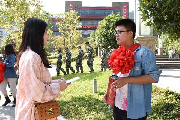校社团联合会对外联络部副部长、数学与计算机科学学院2017级数学与应用数学专业王勤同学:本次救灾中,在学校领导老师们身先士卒的感染下,我们学生志愿者们自发集结,勇于面对洪水带来的逆境,干劲十足的投入学校灾后恢复工作,对学校及周边淤泥进行清理,确保了学校的按期开学。我们始终牢记了习近平总书记“青年兴则国家兴,青年强则国家强”的嘱托,做好党的后备军和接班人。在祖国七十华诞之际,用奉献和担当为团旗添彩,祝愿祖国繁荣富强。