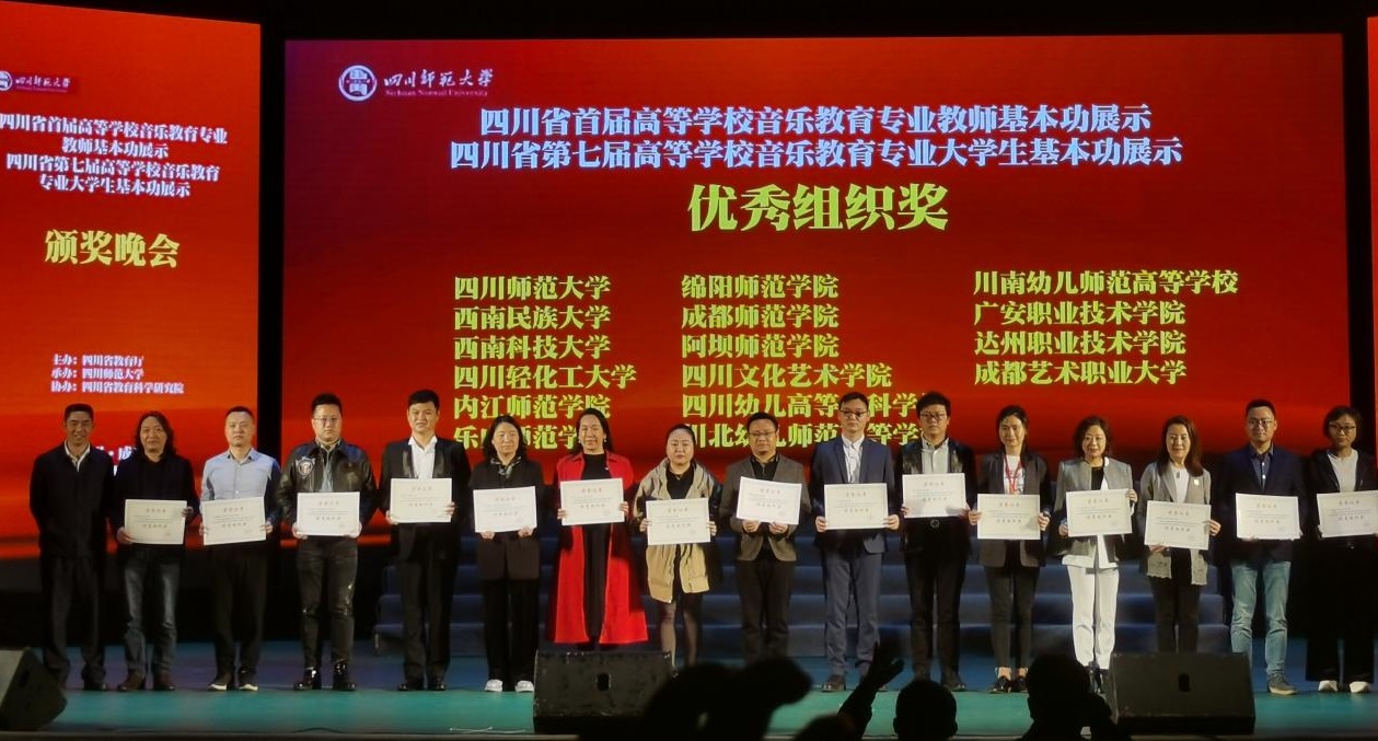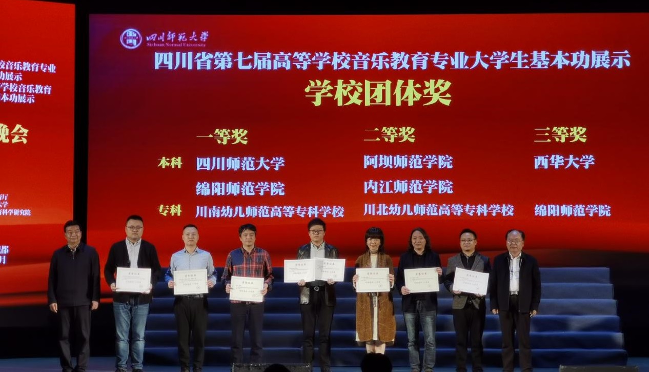 本网讯:由四川省教育厅主办的四川省首届高等学校音乐教育专业教师基本功比赛、第七届高等学校音乐教育专业大学生基本功比赛于2021年4月12日至16日在四川师范大学音乐学院举行。此次比赛共有省内30所高校的77名教师、84名学生参赛,大赛分设教师组、学生本科组和学生专科组,根据赛事规则,只有30%的选手能够获奖。我校音乐舞蹈学院组队参加了教师组和学生本科组比赛;参与展示的项目分为微课展示、歌唱与歌曲伴奏、自弹自唱、中外乐器、舞蹈和合唱指挥,经过激烈比拼,我校师生荣获一等奖3项、二等奖5项、三等奖6项、团体奖2项的优异成绩。
