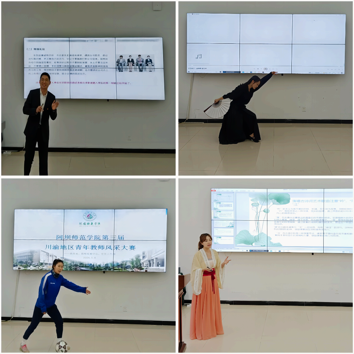 【本网讯】为进一步加强师德师风建设,弘扬尊师重教社会风尚,推动成渝地区双城经济圈教育协同发展,彰显青年教师“为党育人,为国育才”的使命担当和青春风采,5月8日,教务处、教师工作部·人事处(教师发展中心)、学生工作部联合举办了阿坝师范学院第三届青年教师风采大赛。