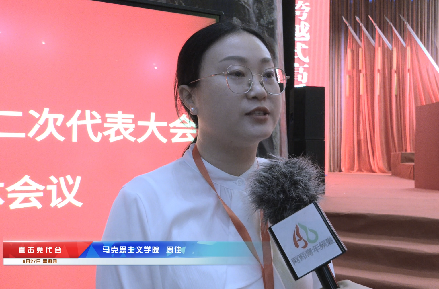 马克思主义学院教师周佳:作为中国共产党阿坝师范学院第二次代表大会的一名代表,我深感荣幸与责任重大,在这重要时刻,我想分享一些感言。此次党代会是在我校谋划高质量发展三年行动计划开局起步这一关键时期召开的一次提振信心、凝聚人心,进一步统一思想,凝聚共识的大会。学校始终围绕“两评估,两转型”发展战略,以立德树人为根本任务,聚焦培养应用型人才而不懈努力奋斗。作为一名阿师人,我为阿师发展感到骄傲与自豪。作为一名思政课老师,我深感使命在身,责任在肩,将以此次党代会精神为指引,坚守立德树人的初心与使命,积极作为,切实把思想和行动统一到党代会精神上来,充分发挥思政课育人主阵地作用,传承红色基因,进一步提高育人质量。