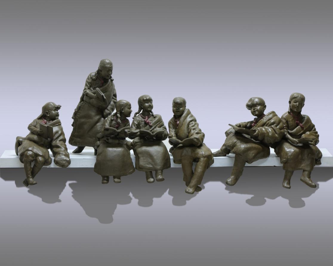 雕塑作品《高原红》展现了新时代藏区小学生的晨读场景,通过生动有趣的动态组合和朝气蓬勃的神情刻画,凸显藏区教育事业的发展成就和全面建成小康社会伟大成就这一重大主题。