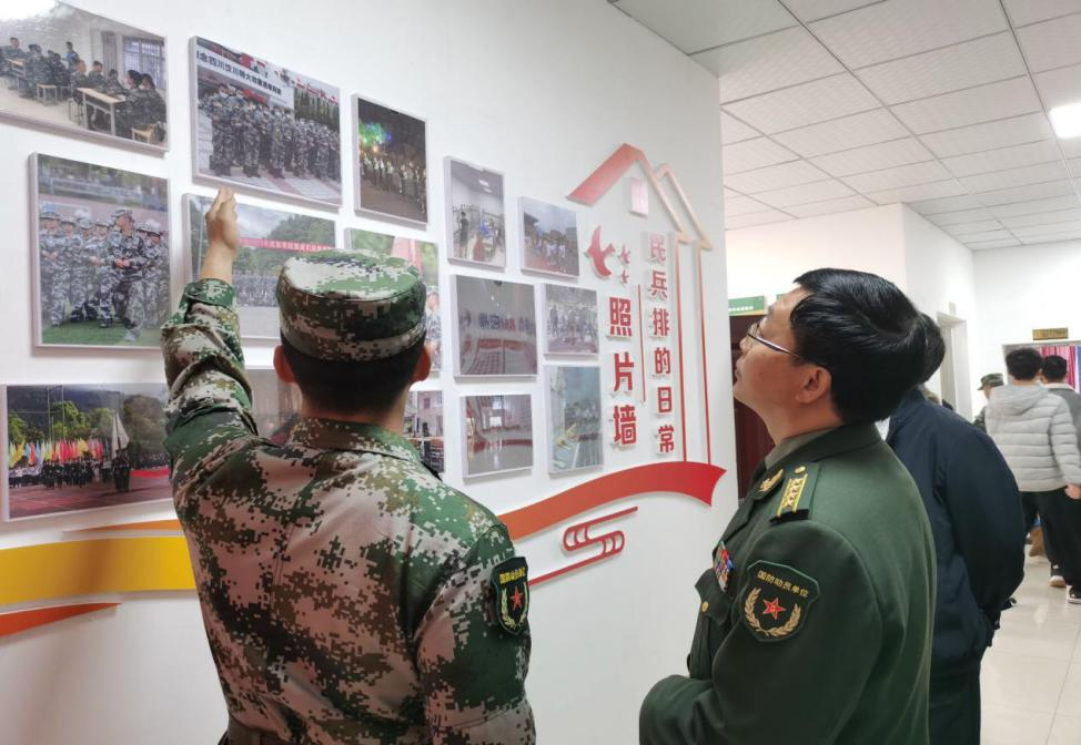 向武对王司令员的到来表示热烈欢迎,并对上级武装部门给予我校武装部建设及民兵排工作的关心和支持表示诚挚感谢。我校民兵排排长黄鹏向领导们简要介绍我校民兵排的建设工作及组织活动开展情况,王司令员逐一参观了我校武装部的“三室一库”及墙文化建设,对我校民兵排的建设和组织开展情况给予“军营型”“兵味浓”的高度评价。