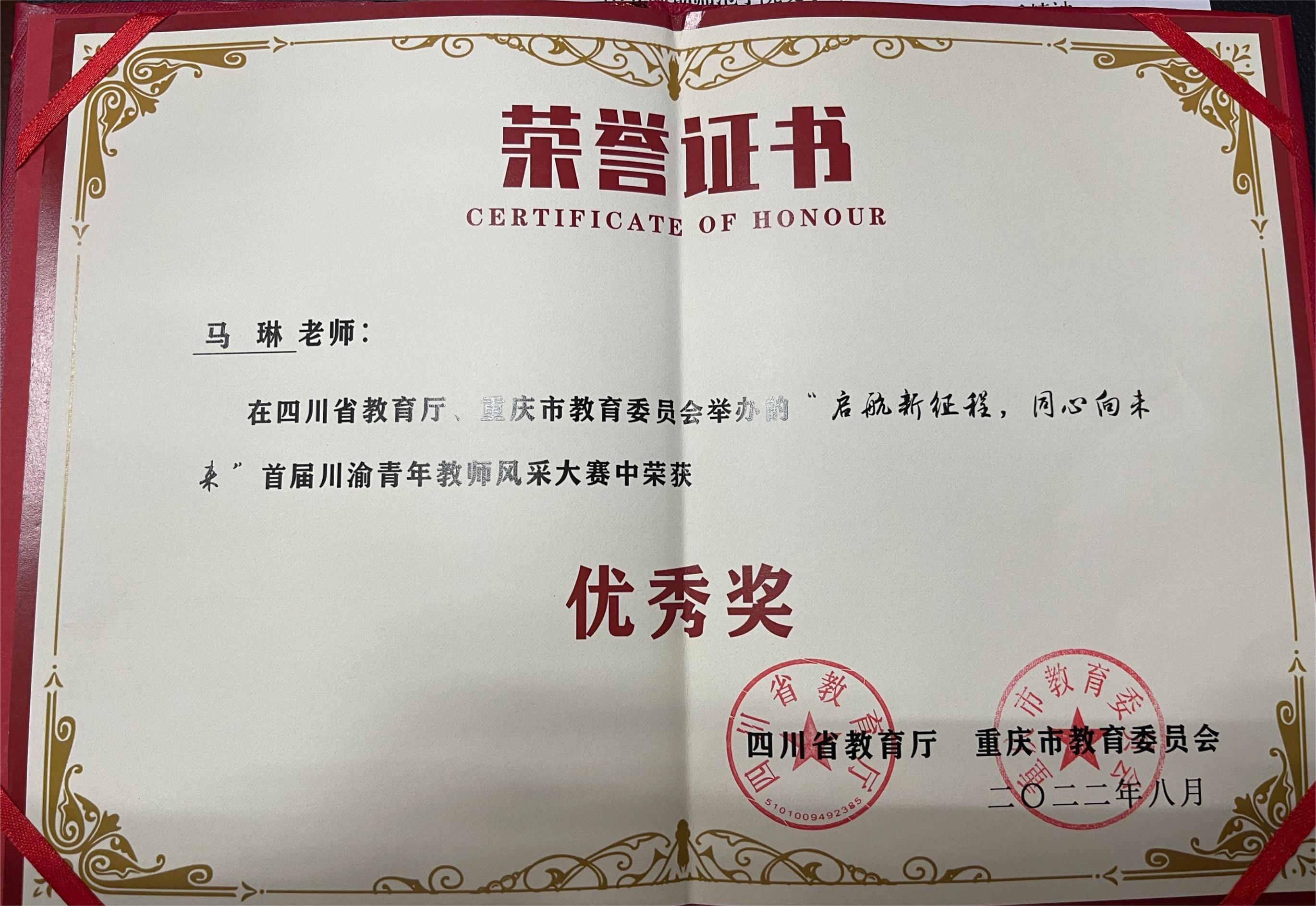 【本网讯】为深入学习贯彻习近平总书记关于教育的重要论述,推动成渝地区双城经济圈教师教育协同发展。四川省教育厅、重庆市教育委员会联合举办“启航新征程,同心向未来”首届川渝青年教师风采大赛。日前,大赛获奖名单已公布,我校文学与传媒学院青年思想政治辅导员教师马琳荣获高校组优秀奖。