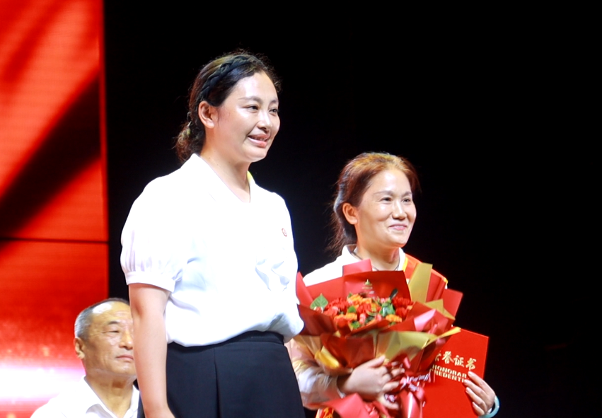 (图:党委常委、宣传统战部部长查旺斯基为汶川县师德标兵颁发荣誉证书)