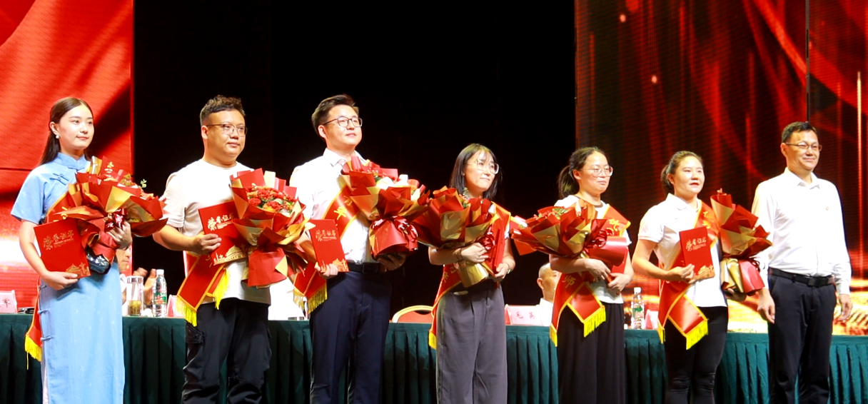 (图:党委常委、组织部部长刘伟为优秀青年教师颁发荣誉证书)