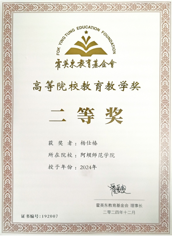 【本网讯】近日,教育部港澳台事务办公室公布霍英东教育基金会第19届高等院校青年科学奖和教育教学奖名单,我校数学学院杨仕椿教授荣获高等院校教育教学奖二等奖。这是自霍英东教育基金会成立38年来,我校教师首次荣获此奖项。